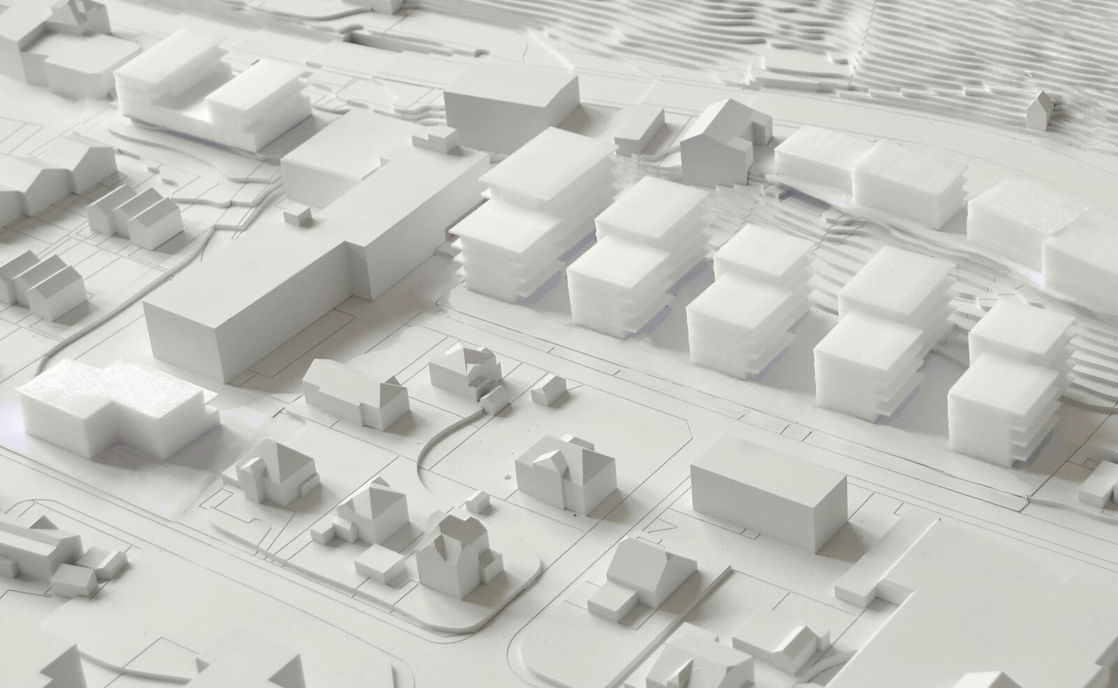 Für das zentrumsnahe Nabholz-Areal haben wir das Richtprojekt für den Gestaltungsplan entwickelt. Kubische Baukörper lehnen sich an den Bestand der Industriebauten an, die orthogonale Setzung wurde vom bestehenden Raster übernommen und damit auch die Lärmsituation an der Aarauerstrasse gelöst. Zeilen- und Punktbauten unterschiedlicher Prägung formen ein abwechslungsreiches Quartier. Die Raumwirkung entsteht nicht primär durch eng verwandte Bauten, sondern vielmehr durch deren Zwischenräume. Räumlich prägend ist die Hangkante, die den Geländesprung zwischen der Aarauerstrasse und dem tieferen Niveau des Areals akzentuiert und dass die Gebäudehöhen zwischen vier und fünf Vollgeschossen variieren.