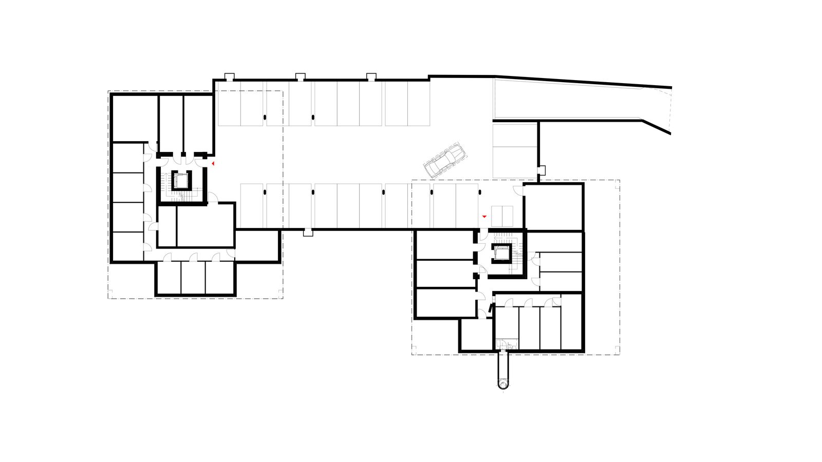 Mit der Reduktion auf zwei eher punktförmige Gebäude ergeben sich auch durchlaufende Aussenraum- und Sichtbeziehungen.