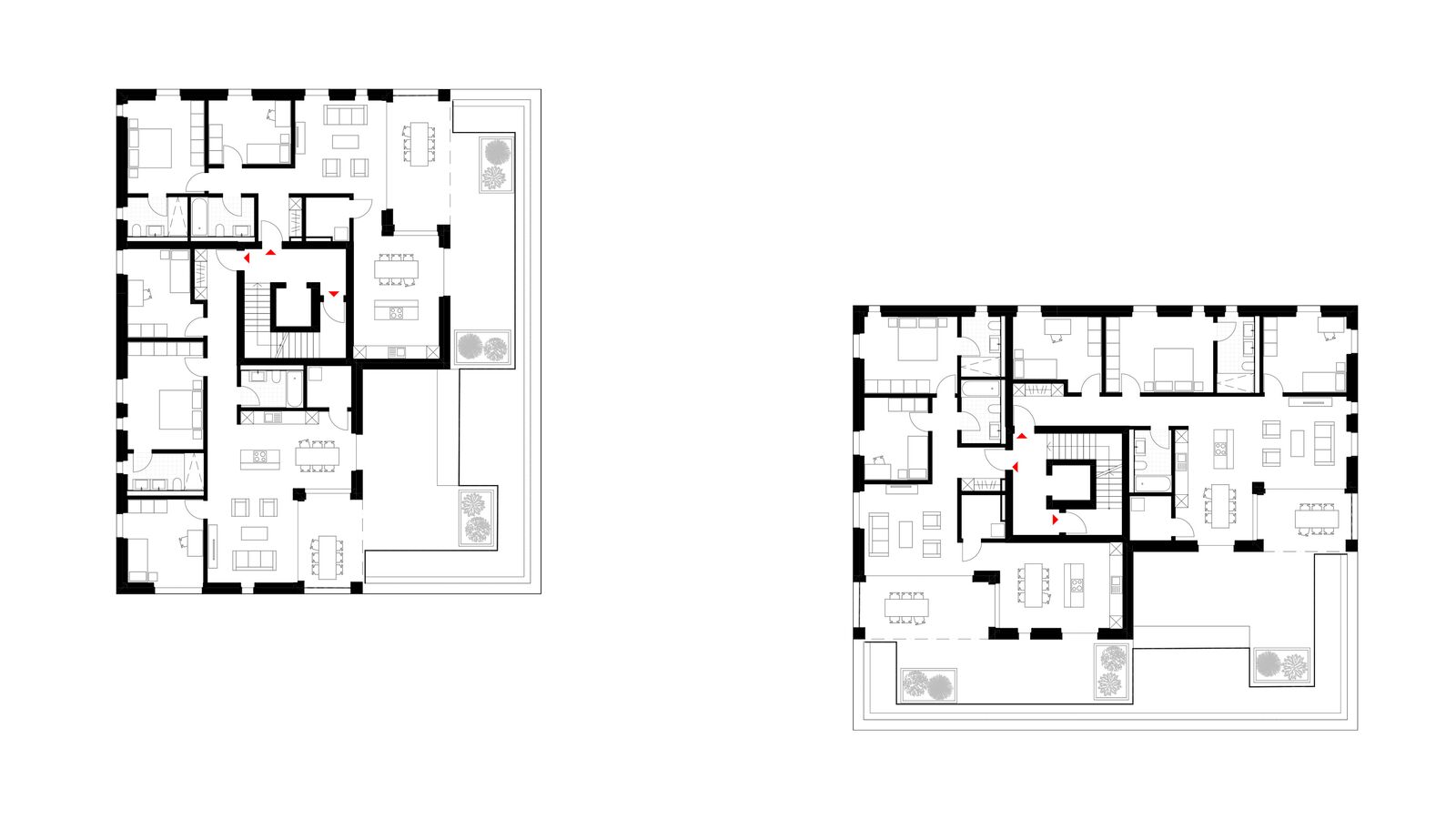 Die beiden Mehrfamilienhäuser weisen insgesamt je sechs 3½- und 4½-Zimmer-Wohnungen sowie vier 5½-Zimmer-Wohnungen auf.