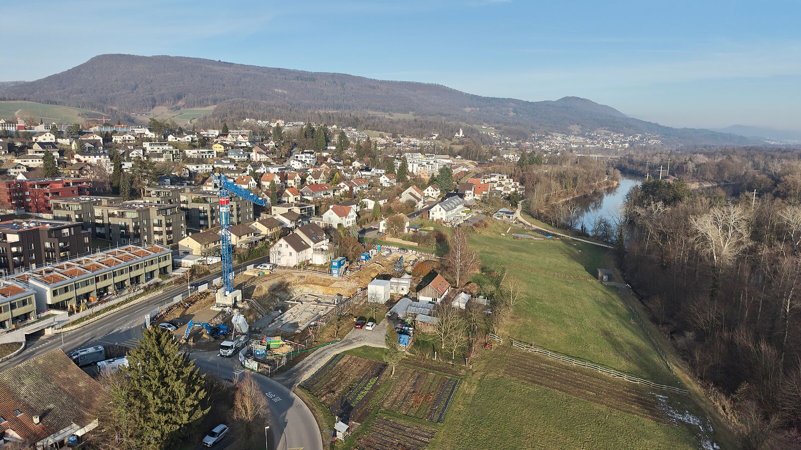 Das gegen Süden zur Aare abfallende Gelände zeichnet sich durch die besondere Lagequalität aus. Der untere Bereich liegt in der Landwirtschaftszone und wird als erweiterter Gartenraum erlebbar und genutzt werden.
