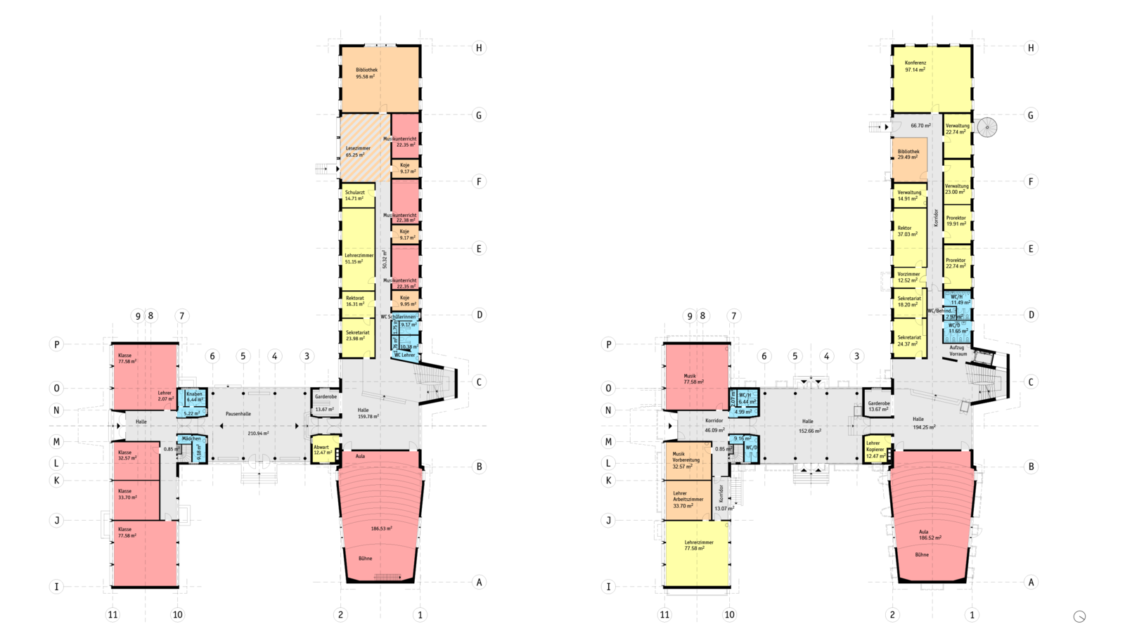 Das Ziel der Sanierung ist es, das Gebäude bautechnisch und räumlich in einen Zustand zu versetzen welcher den Anforderungen heutiger Schulbau-Standards und zukünftiger Unter-richtsgestaltung gerecht wird.