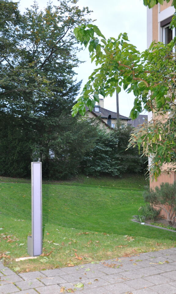 Die Leuchte ist Teil eines Aussenbeleuchtungssystems. Diese ermöglicht die Beleuchtung unterschiedlichster Bereiche in Form einer Säulen-, Sockel-, Steh-, Wand- oder Deckenleuchte. Die Leuchte setzt die technischen Möglichkeiten und Freiheiten des LED-Leuchmittels in Gestaltung und Design um.
