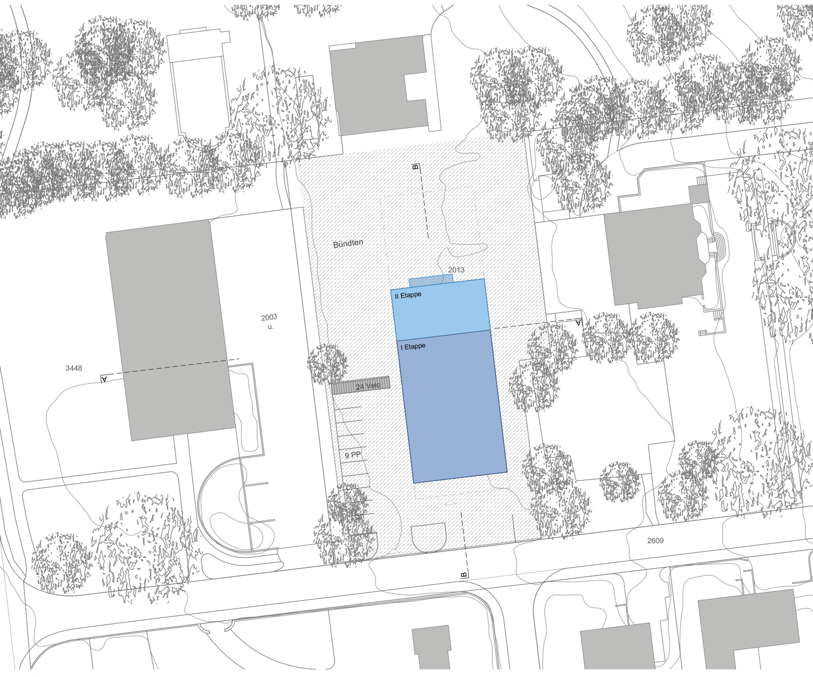 In einer ersten Phase analysierten wir die Qualität der Standorte aus städtebaulicher und denkmalpflegerischer Sicht, letzteres mit Unterstützung der kantonalen Denkmalpflege. Weitere bedeutende Aspekte bei der Prüfung waren ausreichender Freiraum, die Verkehrsanbindung, die Sicherheit für die Kinder, die Nähe zur Schule sowie die Realisierbarkeit. Ein wichtiges Kriterium für den Hort war, dass die Gebäudegrösse mindestens zwei Betreuungsgruppen mit einer Anzahl von je 22 Kindern beherbergen kann.