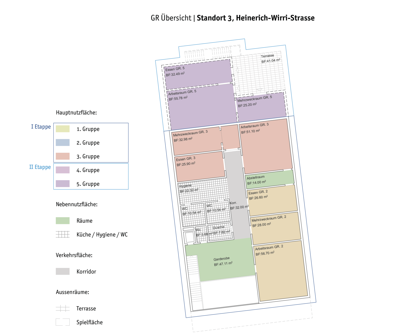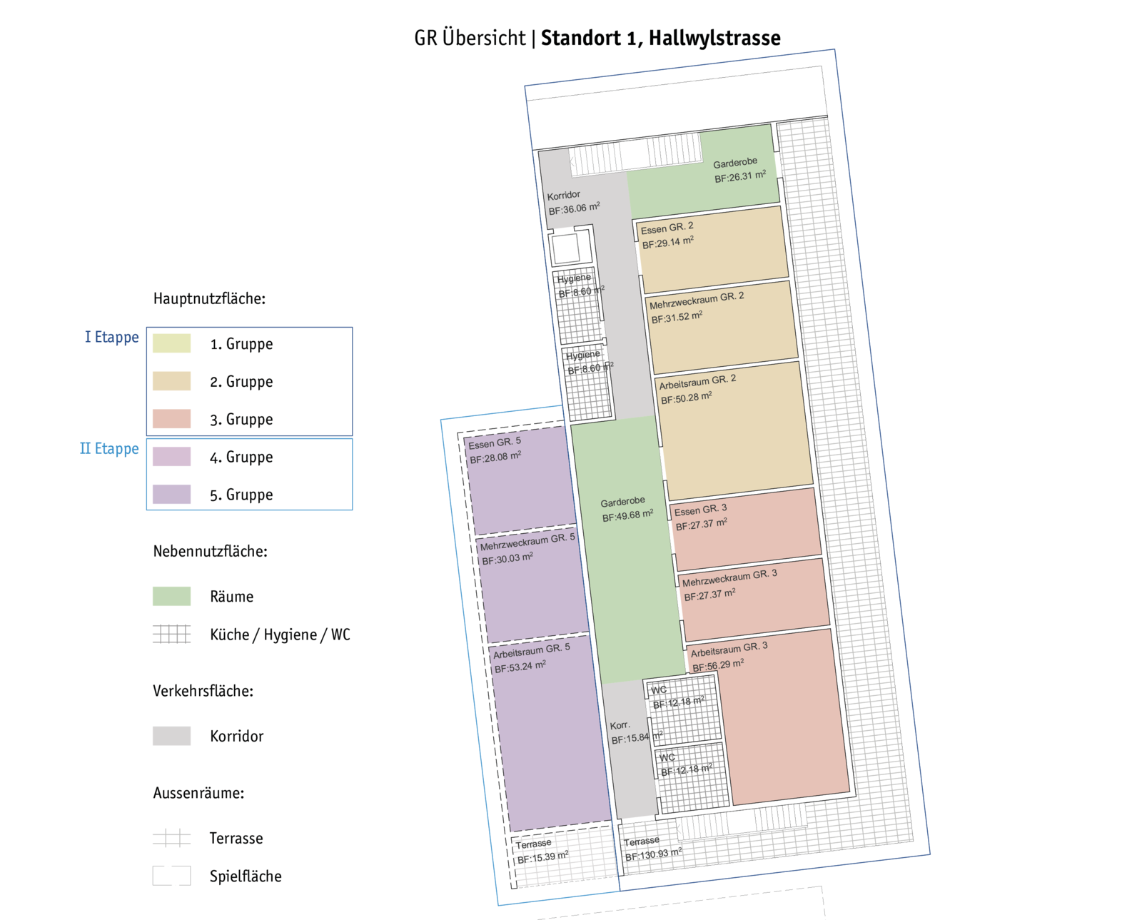 In einer weiteren Phase wurden zwei der fünf Orte ausgewählt und vertieft untersucht. Die Volumetrie sollte nun drei Gruppen umfassen, mit einer möglichen Erweiterung des Horts zu einem späteren Zeitpunkt auf fünf Gruppen.