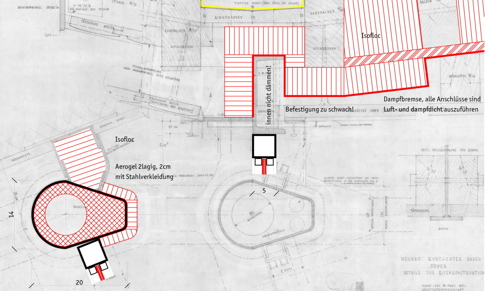 Nachdem die vorhandene Bausubstanz und Tragkonstruktion bezüglich Zustand und Tragsicherheit überprüft wurde, sind in einem Team mit Bauingenieur, Fassadenplaner, Haustechniker und Bauphysiker verschiedene Stossrichtungen zu konstruktiven Lösungen ausgearbeitet worden, welche als Grundlage zur Weiterarbeit mit der Denkmalpflege dienen.