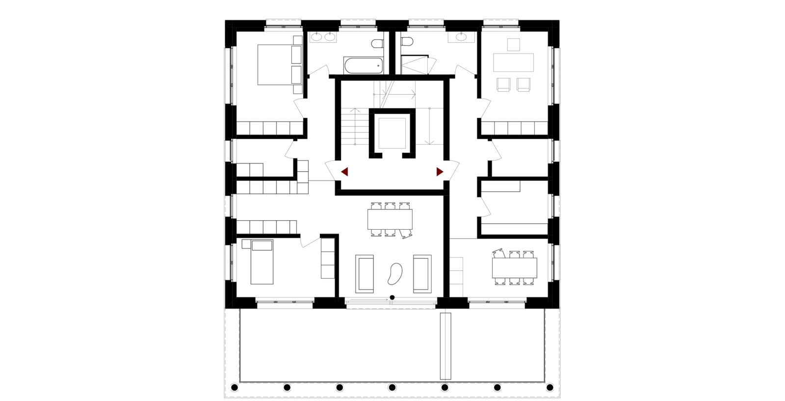 Das Gebäude beherbergt im Erdgeschoss eine Zahnarztpraxis, in den Obergeschossen kleinere 2.5- bis 3.5-Zimmer-Wohnungen sowie eine exklusive Attikawohnung mit grosszügiger Dachterrasse. Im Untergeschoss steht eine Tiefgarage mit 9 Parkplätzen zur Verfügung.