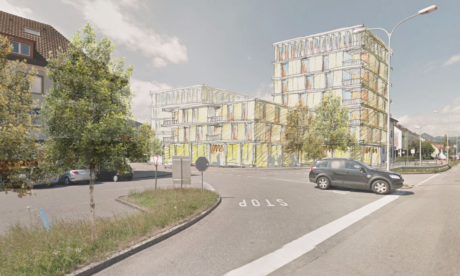 Als Akzentuierung zum Bahnhof ist eine Höhenentwicklung in Richtung Niederämterstrasse angezeigt. Zur Adressbildung (sowohl «nach aussen» zur Niederämterstrasse als auch «nach innen» ins Quartier) macht eine Grundrissgliederung der zukünftigen Bebauung Sinn. Die Gliederung erlaubt räumliche Bezüge zu den angrenzenden Häusern und hierarchisiert die Aussen- und Freiräume; die Strassenräume werden rhythmisiert und einer «Korridorwirkung» wird so entgegengewirkt. Last but not least resultiert aus der Gliederung eine grössere Fassadenabwicklung, die der Wohnnutzung in den oberen Geschossen dient. In der Höhenentwicklung wird die Bebauung gestaffelt, damit so orts-baulich auf die unterschiedlichen Situationen reagiert werden kann.