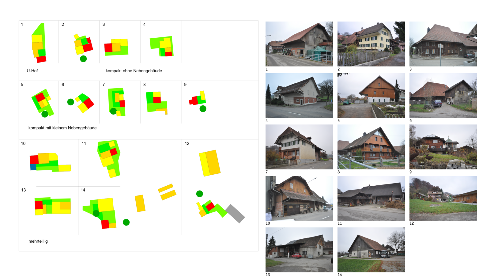 Im Hinblick auf den Projektvorschlag analysieren wir das Gebiet grossräumig und destillieren wichtige räumliche Massnahmen und Absichten. Themata sind Gletscher und Moräne, historische Entwicklung des Dorfbildes, Bezüge zu Strasse und Erschliessung, räumliche Tiefen und Achsen, Hofkörper und –typen, Dichten und Freiräume.