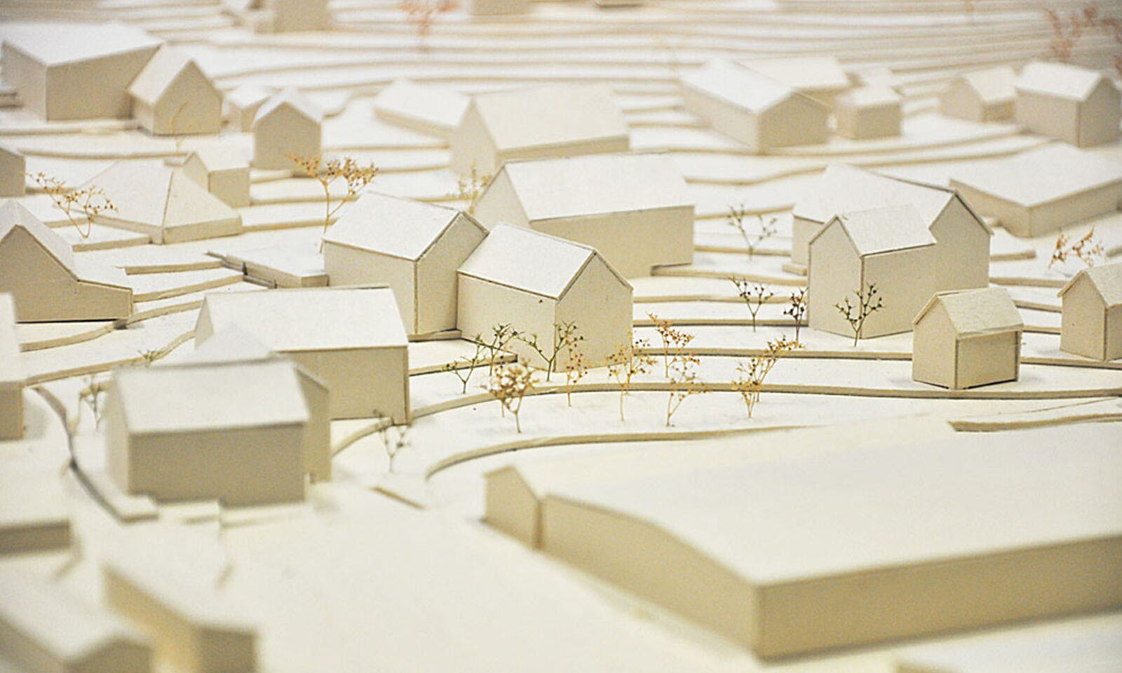 Die Umstände, dass einst Strassenerweiterungen zu (Vor-)Plätzen wurden, die Erschliessungen durch die Häuser hindurch im Baumgarten mündeten und die gewachsenen Bauernhöfe mehrteilig sind, führten uns zu einer dem Ort angepassten Typologie von Aussenräumen, Baukörper und Grünbereiche. Die Häuser bilden ein lockeres Gefüge, sie sind keinem übergestülpten Siedlungsmuster verpflichtet.