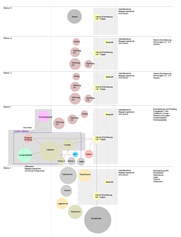 Dem intergenerativen Wohnen verpflichtet, soll die Bebauung einen Beitrag zum Dorf leisten. Neben einer Cafeteria und einem Lädeli sind das Wohnen und Leben begleitende Dienstleistungen geplant.