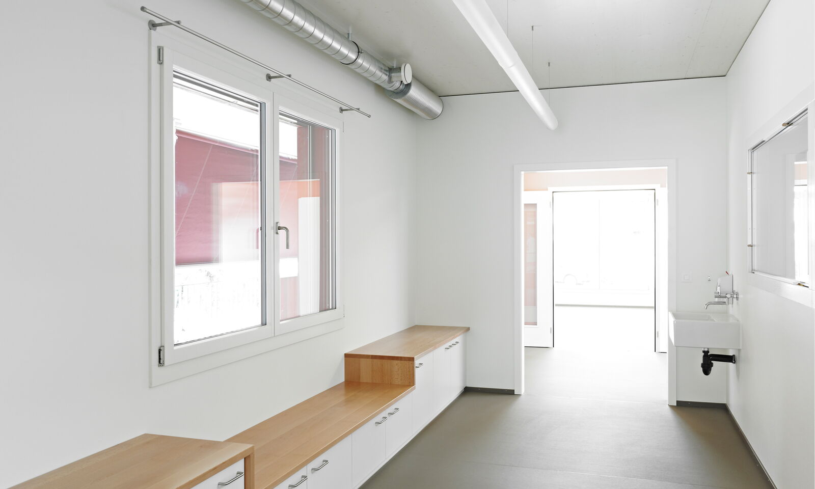 Das Gebäude ist nach Minergie-Eco zertifiziert. Die – unter anderem – schadstoffarme Bauweise eignet sich insbesondere für Nutzungen mit Kindern. Sie hilft dank der vorgeschriebenen Lüftung auch mit, mögliche Restausdünstungen der Baustoffe abzuführen, die der kurzen Bauzeit geschuldet sind.