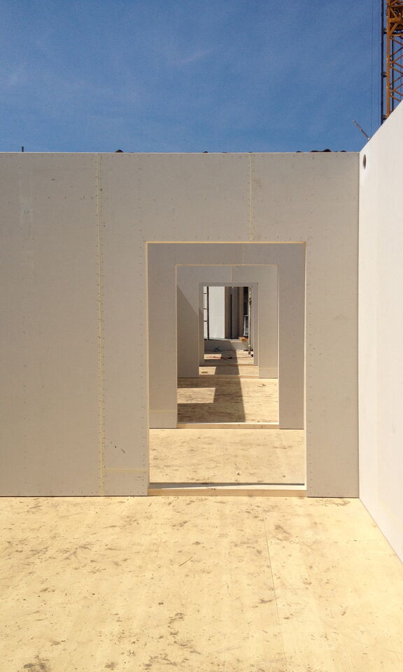 Die enge Terminvorgabe und der Wunsch, das Gebäude bei Bedarf umplatzieren zu können, führten zum Entscheid einen Holzelementbau zu produzieren.