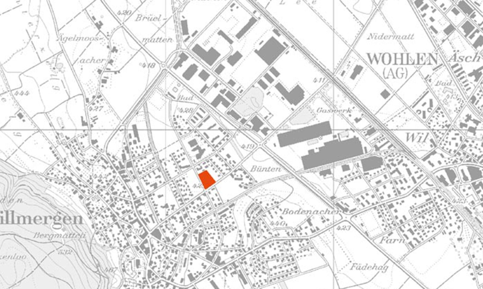 Die ebene Parzelle in Villmergen liegt an der Verbindungsstrasse zum Nachbarsort Wohlen. Das trapezförmige Grundstück verfügt über keine spezifischen Eigenschaften.