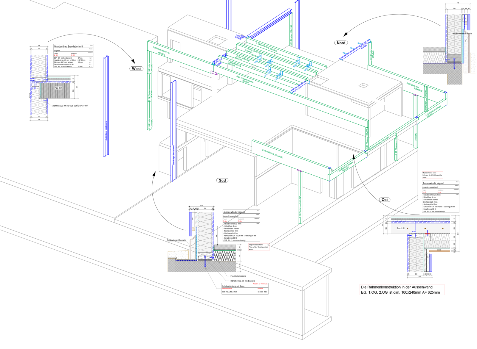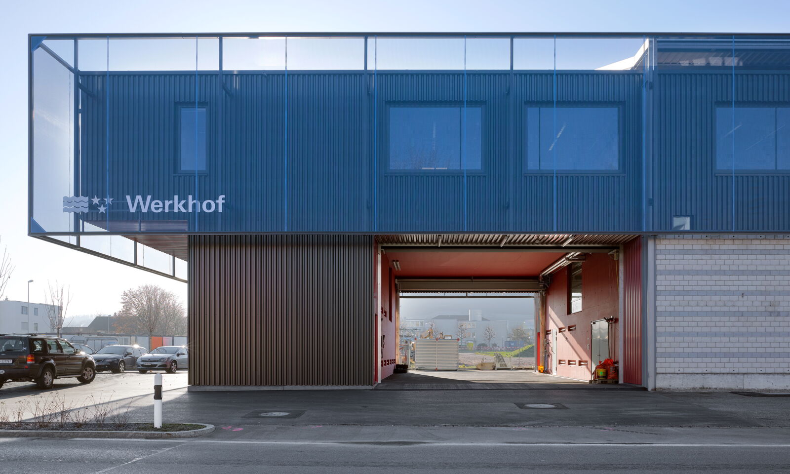 Kunst am Bau als integraler Bestandteil der Raumbildung. Minergie-ECO als Garant für nachhaltiges Bauen. Eine bestehende Werkhalle wird durch den Kanton übernommen. An der schnurgeraden Strasse von Hunzenschwil nach Lenzburg soll der neue Werkhof des Kantons (Kreis I) entstehen. Massgebende Basis des Entwurfes bilden die Struktur der bestehenden Halle und die örtlichen Begebenheiten, wie Lage zur Strasse und Blickachsen zur Kirche von Staufen. Die neuen Bauteile fügen sich mit der Halle zu einem Ganzen. Mittels der vermittelnden gewebeartigen Fassade bildet das Haus eine neue Adresse. Der Nutzung entsprechend sind unterschiedliche Erschliessungen des Hauses nötig und möglich. Besucher werden durch die volumetrische Ausformulierung des Gebäudes geleitet. Nutzung, Struktur und Konstruktion sind in Grundriss und Schnitt ablesbar. Die beiden Nutzungen sind einzeln betreibbar und ihren Anforderungen entsprechend angeordnet. Mit der Disposition der Nutzung über dem bestehenden Waschplatz ist die Kommunikation zwischen den beiden Bereichen einfach möglich. Der Holzbau nimmt Bezug auf die vorhandene statische Struktur des Untergeschosses und erfüllt die Kriterien der Nachhaltigkeit. Der Werkhof ist Minergie zertifiziert mit AG-02-ECO.