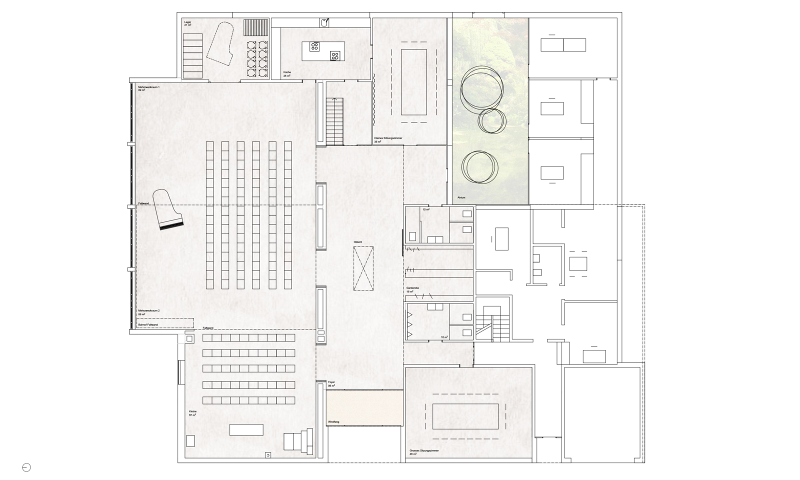Neben den wichtigen Oberflächenerneuerungen wurde eine deutliche Verbesserung der Mehrzwecknutzung für Sitzungen, Seminare, Proben, Konzerte und Bankette in Verbindung mit der Nutzung als Kirche gewünscht.