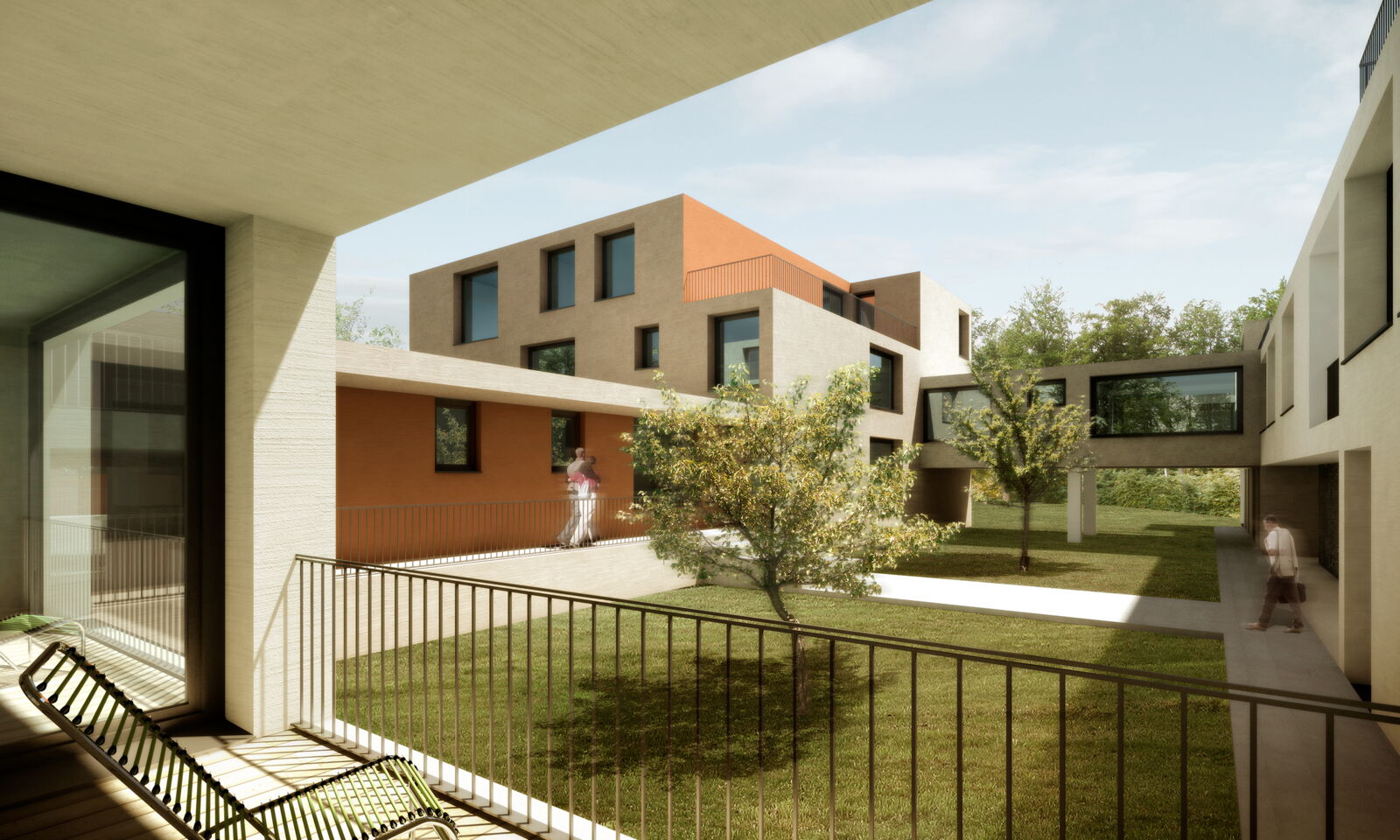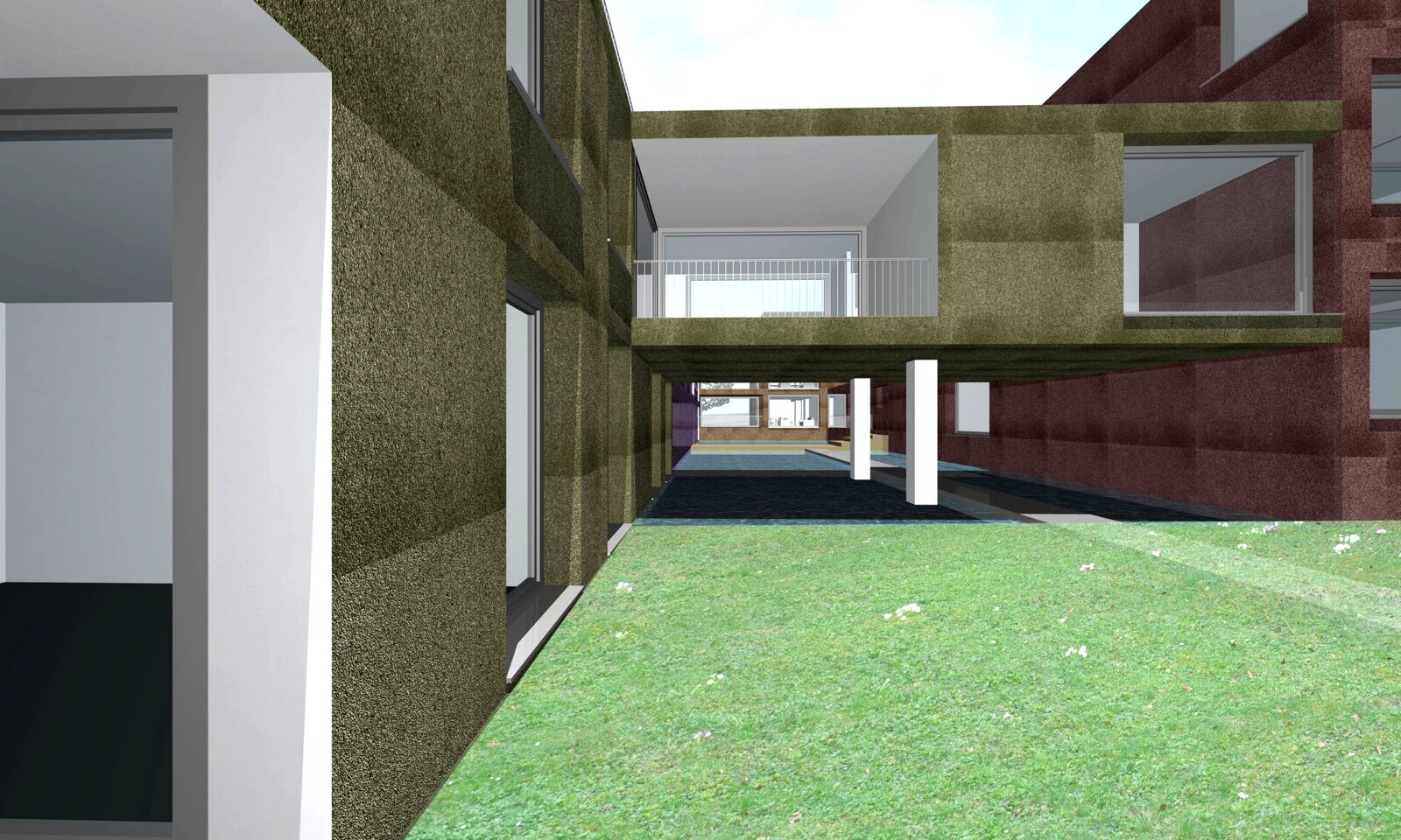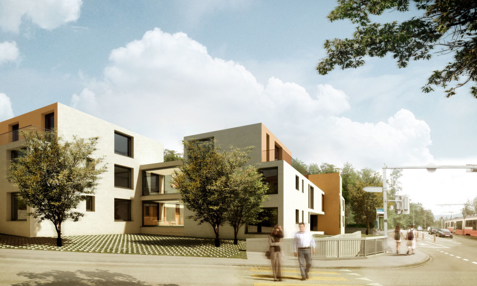 In Anlehnung an das Bebauungsmuster der Nachbarschaft wird ein neues Ensemble entwickelt welches aus vier einzelnen Häusern besteht. Eine bereits bestehende Tiefgarage wird weitergenutzt. Die Häuser werden durch ein klares Erschliessungssystem untereinander verbunden. Alle Wohnungen haben mindestens zwei Ausrichtungen und verfügen über grosszügige Aussenräume. Sie sind aufgrund ihrer Lage und ihres Zuschnitts für Familien attraktiv, der hofartige Aussenraum schirmt von der Strasse ab und definiert kindgerechte Aussenräume. Hindernisfreie Zugänge ermöglichen altersgerechtes Wohnen und rollstuhlgängige Erschliessung. Es besteht eine direkte Anbindung an die Stadt Zürich. Die Gebäude werden in Massivbauweise errichtet, der MINERGIE-Standard angestrebt. Durch die Verwendung von trennbaren Materialien, dem Einsatz von Recycling-Produkten und einer guten Tageslichtausnutzung wird den Anforderungen der Nachhaltigkeit Rechnung getragen.