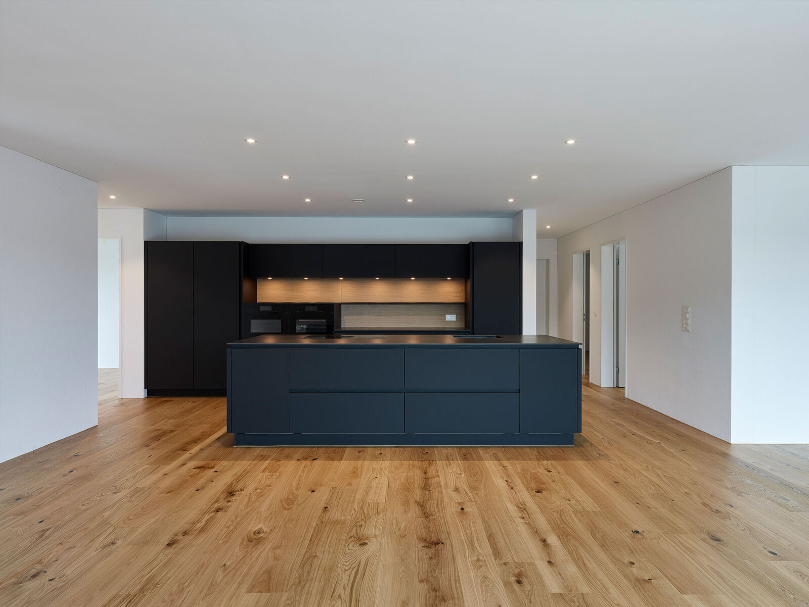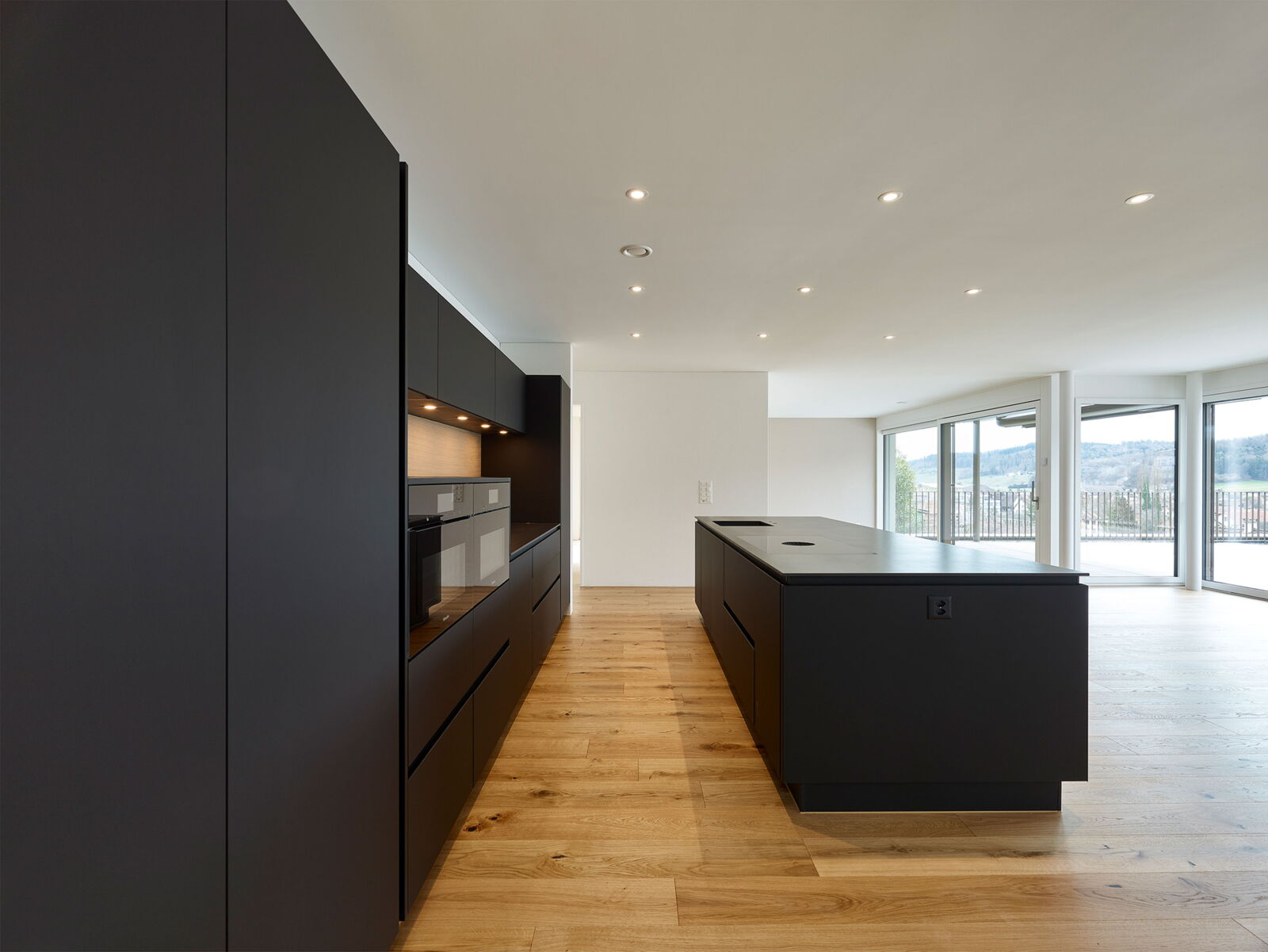 Die Flachdächer sowie die Umgebung wurden begrünt. Die Wärmeerzeugung erfolgt mittels Erdsonden-Wärmepumpe.