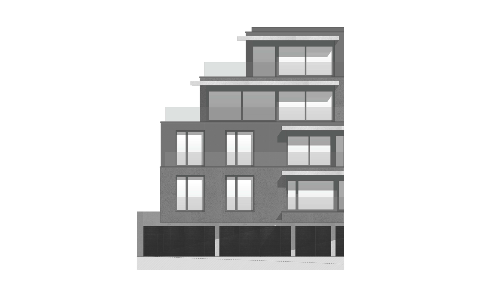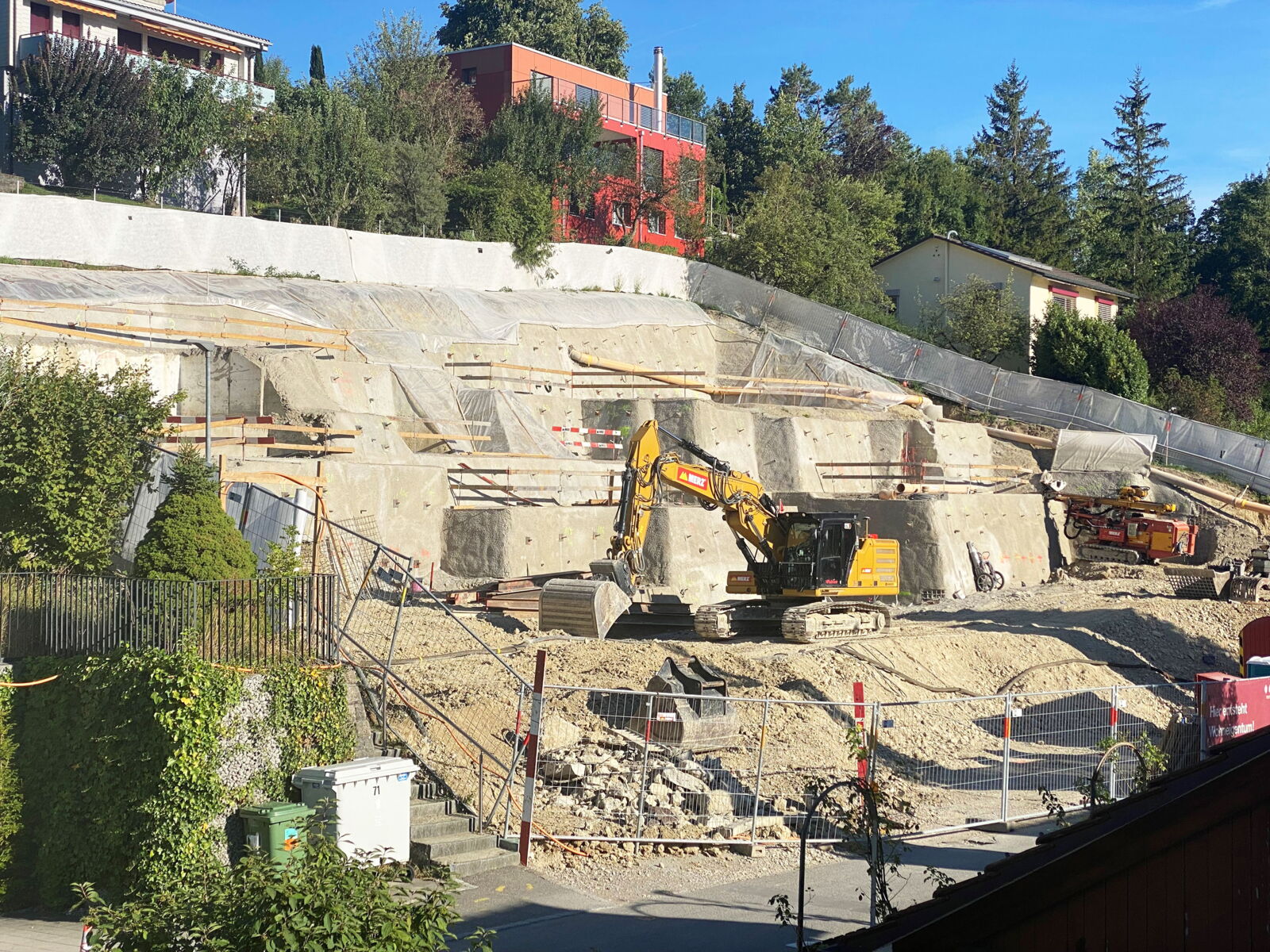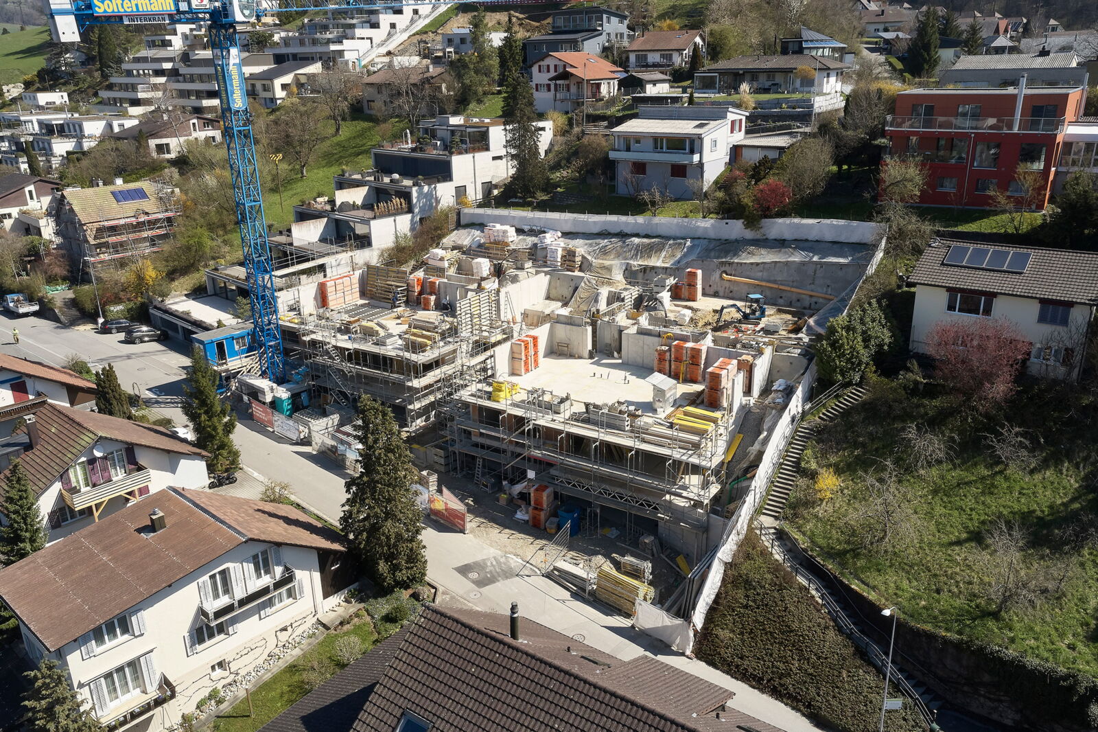 An der Brühlstrasse 73/75 in Erlinsbach, Aargau wurden 2 Terrassenhäuser erstellt mit je 4 Eigentumswohnungen. Die dem Hang folgende, langgezogene Quartierstrasse verfügt über eine lockere Bebauungsstruktur, bestehend aus Einfamilienhäusern, einigen kleineren Mehrfamilienhäusern und wenigen Terrassenhäusern. Auf den beiden Parzellen standen zwei ältere Einfamilienhäuser. Mit dem Ersatz durch die Terrasseneinheiten wurde eine Verdichtung erreicht.