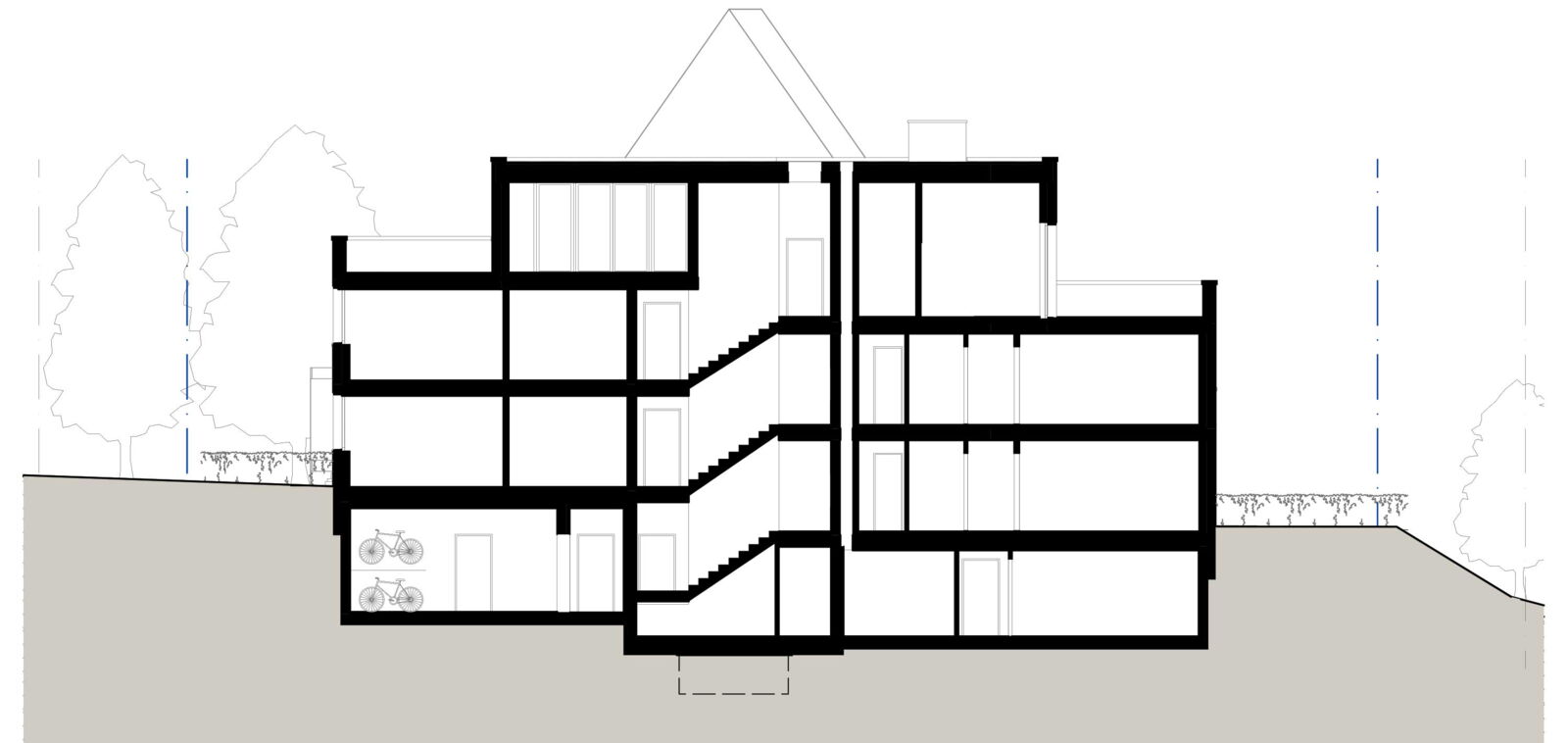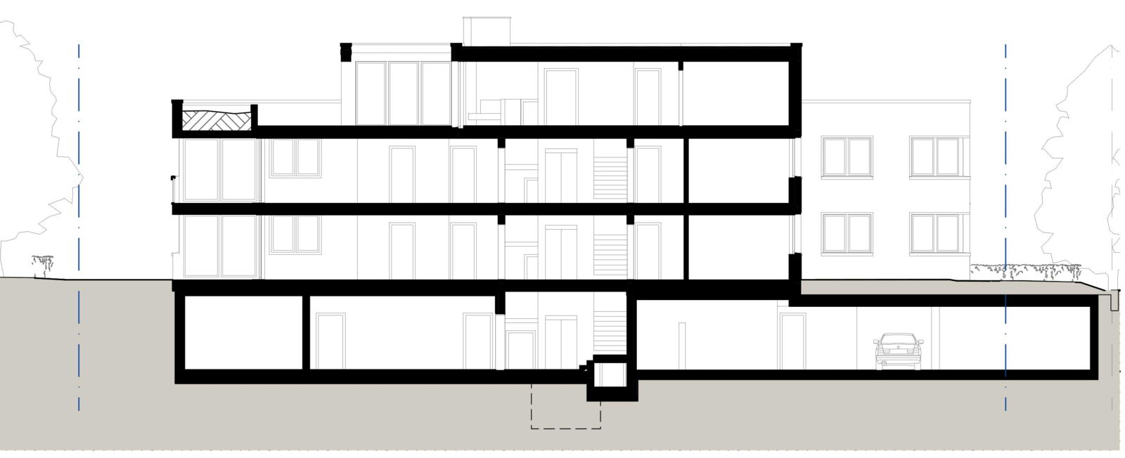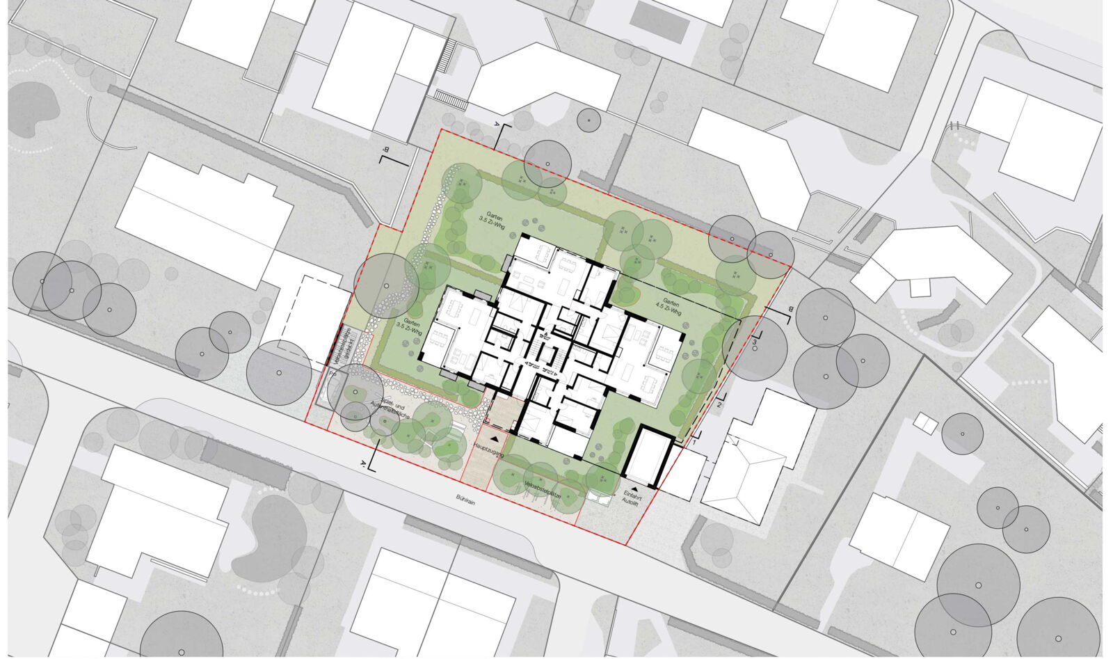 Die Altliegenschaft mit Baujahr 1966 entspricht nicht mehr den heutigen Bedürfnissen und der haushälterischen Nutzung des Bodens. Daher sollen die bestehenden Haupt- und Nebenbauten zurückgebaut und das Areal mit einem Mehrfamilienhaus mit sieben Wohneinheiten und einer Tiefgarage überbaut werden.