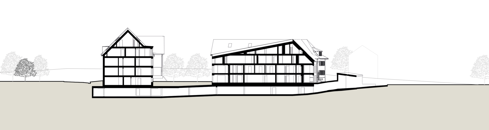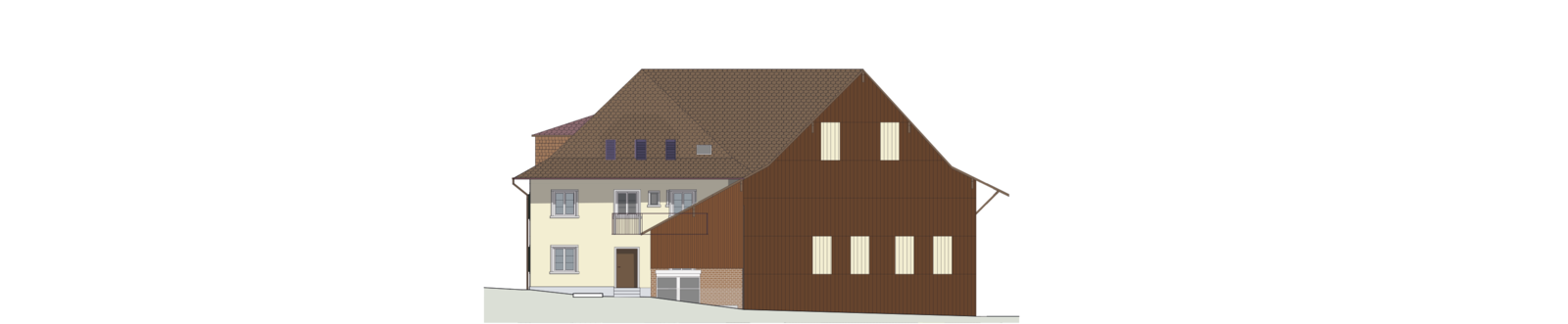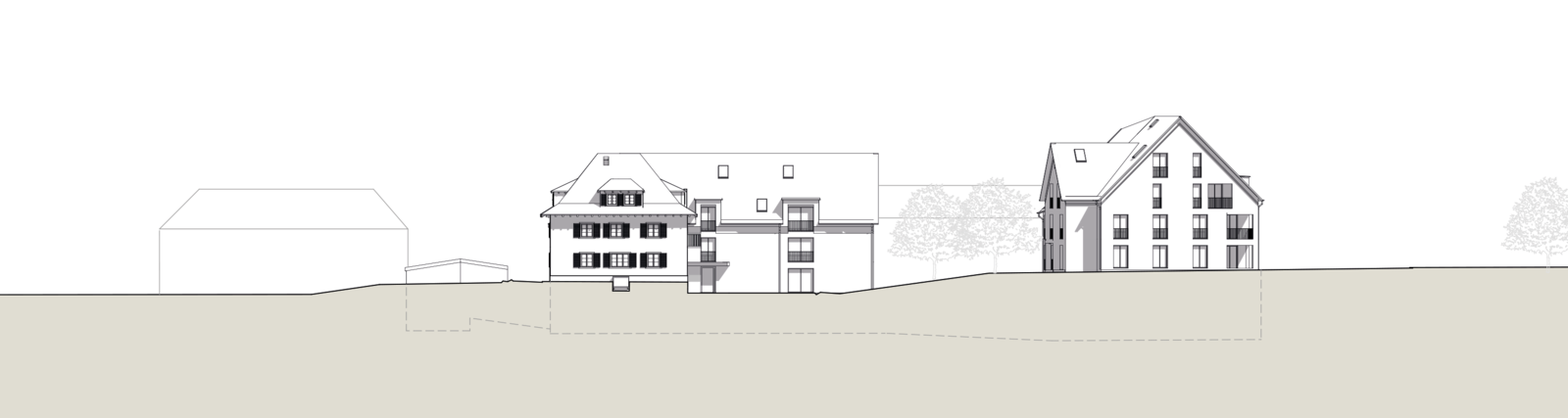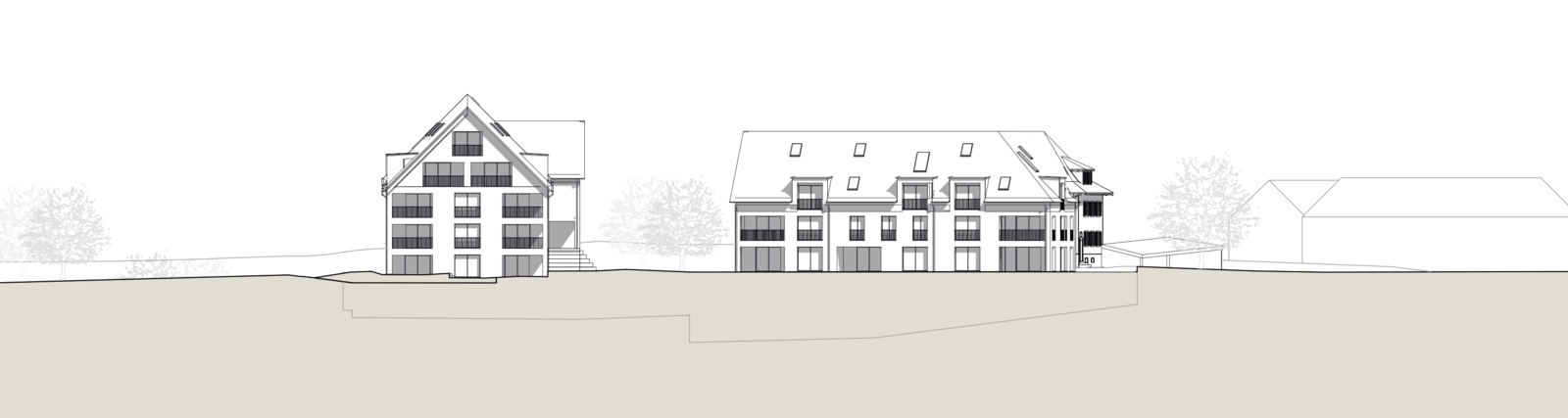 Die geplanten Massnahmen erfolgen unter der Priorität, die Schutzwürdigkeit und Erscheinung des alten Bauernhauses, mit seinem kulturhistorischen Charakter für das Ortsbild, beizubehalten. Im Ersatzneubau werden Mietwohnungen und im Neubau Stockwerkeigentumswohnungen realisiert. Die beiden Neubauten bilden zusammen mit dem Schutzobjekt ein harmonisches Ensemble.