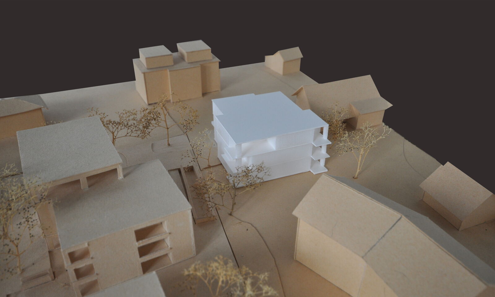 Östlich des alten Dorfzentrums von Aarau Rohr ist das Baugrundstück an der Hauptstrasse als Teil des umgebenden Wohngebiets gelegen. Der Neubau des Mehrfamilienhauses mit 6 Wohnungen vermittelt im Massstab zwischen der eher grossvolumigen Bebauung mit Mehrfamilienhäuser im Westen und dem angrenzenden Einfamilienhaus im Osten.