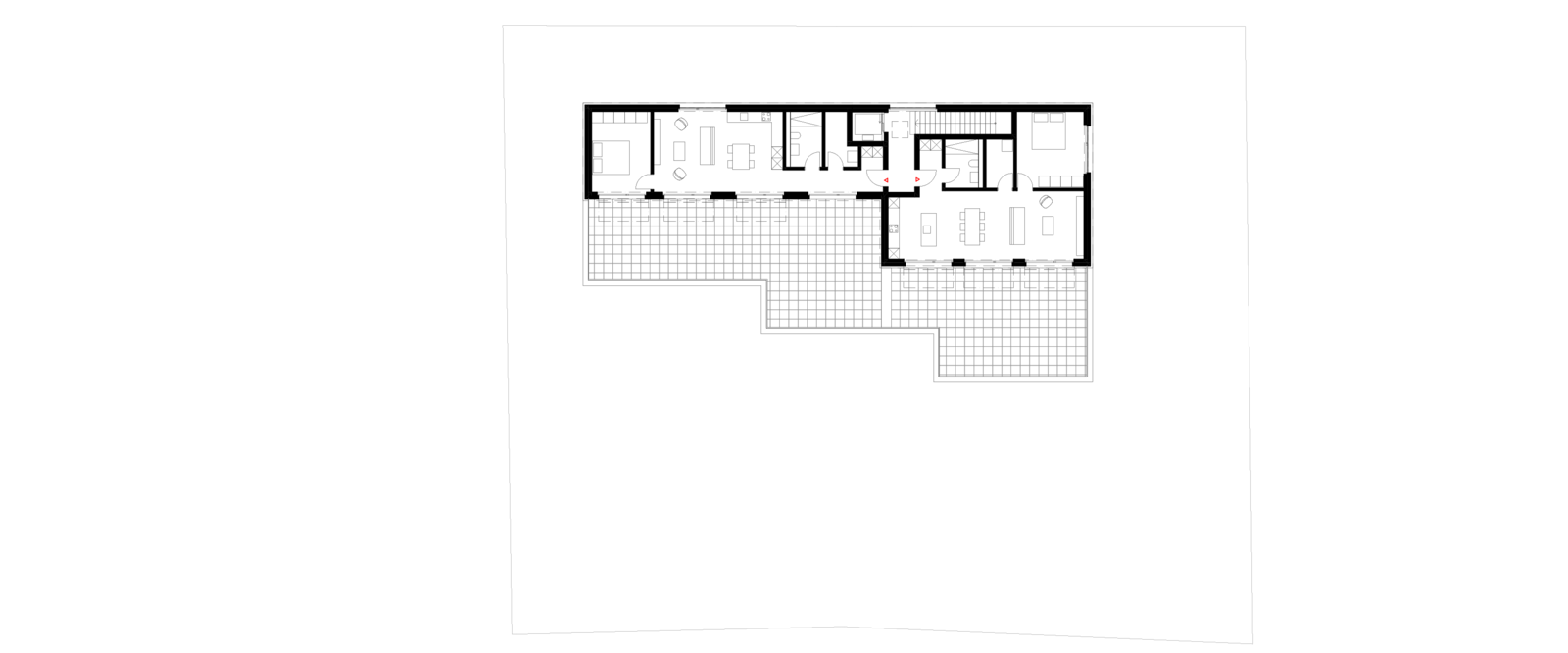 Der Neubau reiht sich konsequent in der Flucht der benachbarten Gebäude auf und stärkt die bauliche Front diesseitig der Weihermattstrasse. Der strassenseitig kompakte Baukörper löst sich gartenseitig auf und wird gegliedert in einer sich gegen Südwesten gerichteten Staffelung. Die naturnahe Farbgebung der Fassaden fügen sich gut ins Umfeld ein, in welchem bereits heute helle bis vereinzelt braun-rötliche Töne dominieren.