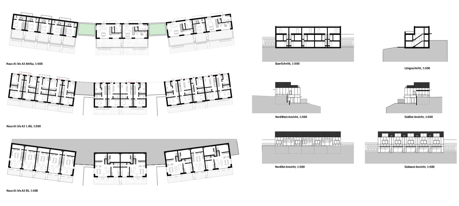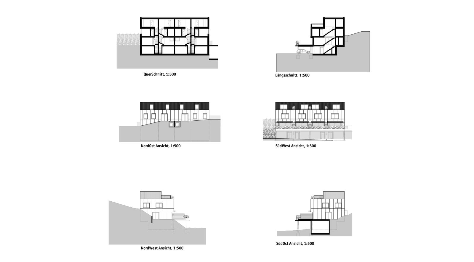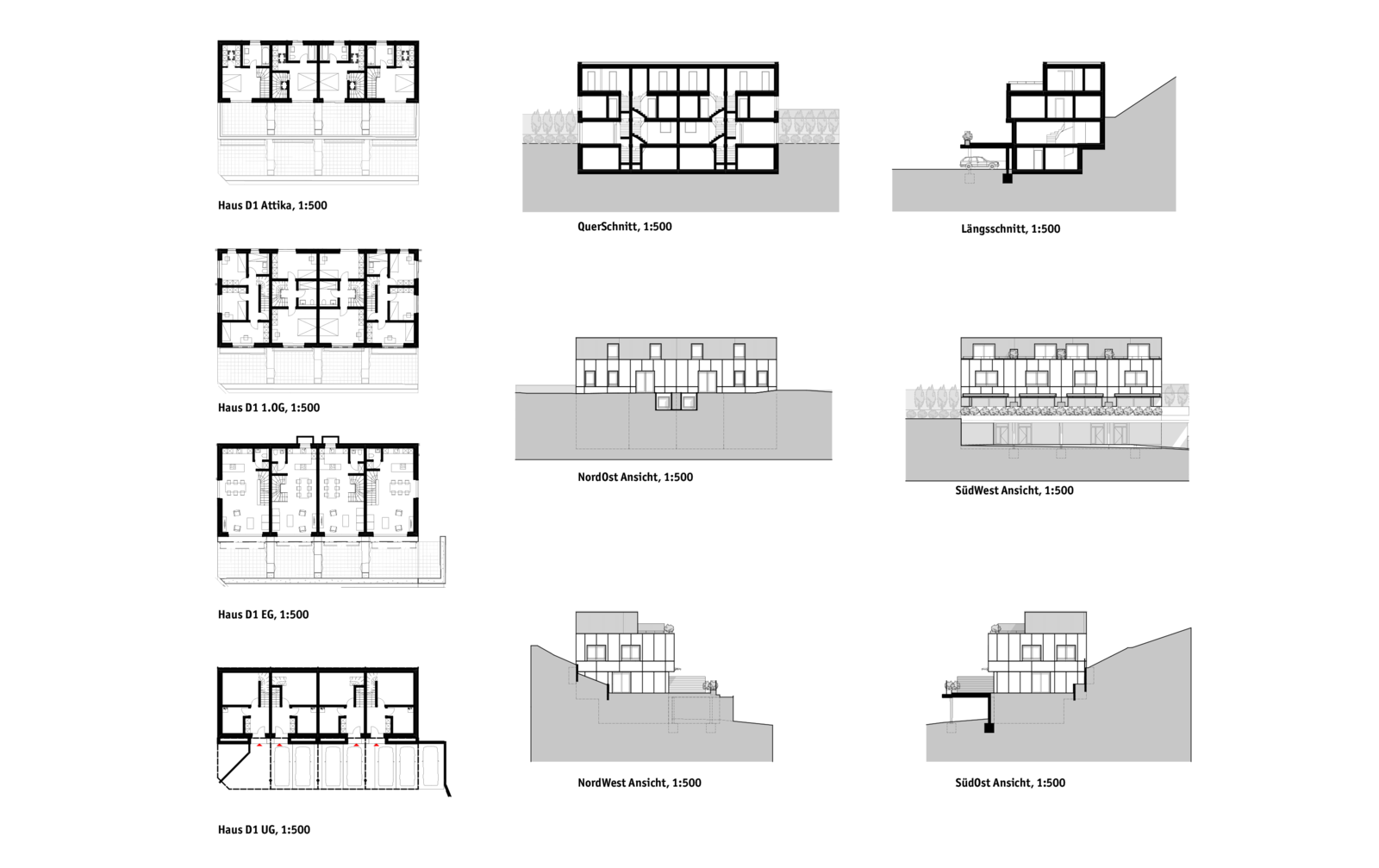 Die jeweils beidseitig der Erschliessung angeordneten Baufelder ermöglichen eine individuelle Realisierung von Einfamilienhäusern, Doppelhäusern oder Reihenhäusern. Die Höhenstaffelung der Hauptgebäude erlaubt, dass die Hauptgebäude mit Nebenbauten verbunden sein können, ohne die Aussicht zu beeinträchtigen.