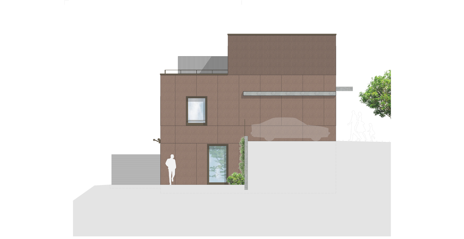 Die Räckholderstrasse gabelt sich an der Ostseite der Überbauung und steigt, respektive fällt, mit zumutbarem Gefälle und erschliesst so die Baufelder. Entsprechend dieser Regel wird die Dürrenbergstrasse verlegt und ermöglicht eine rhythmisch ausgewogene Gliederung der Hangüberbauung.