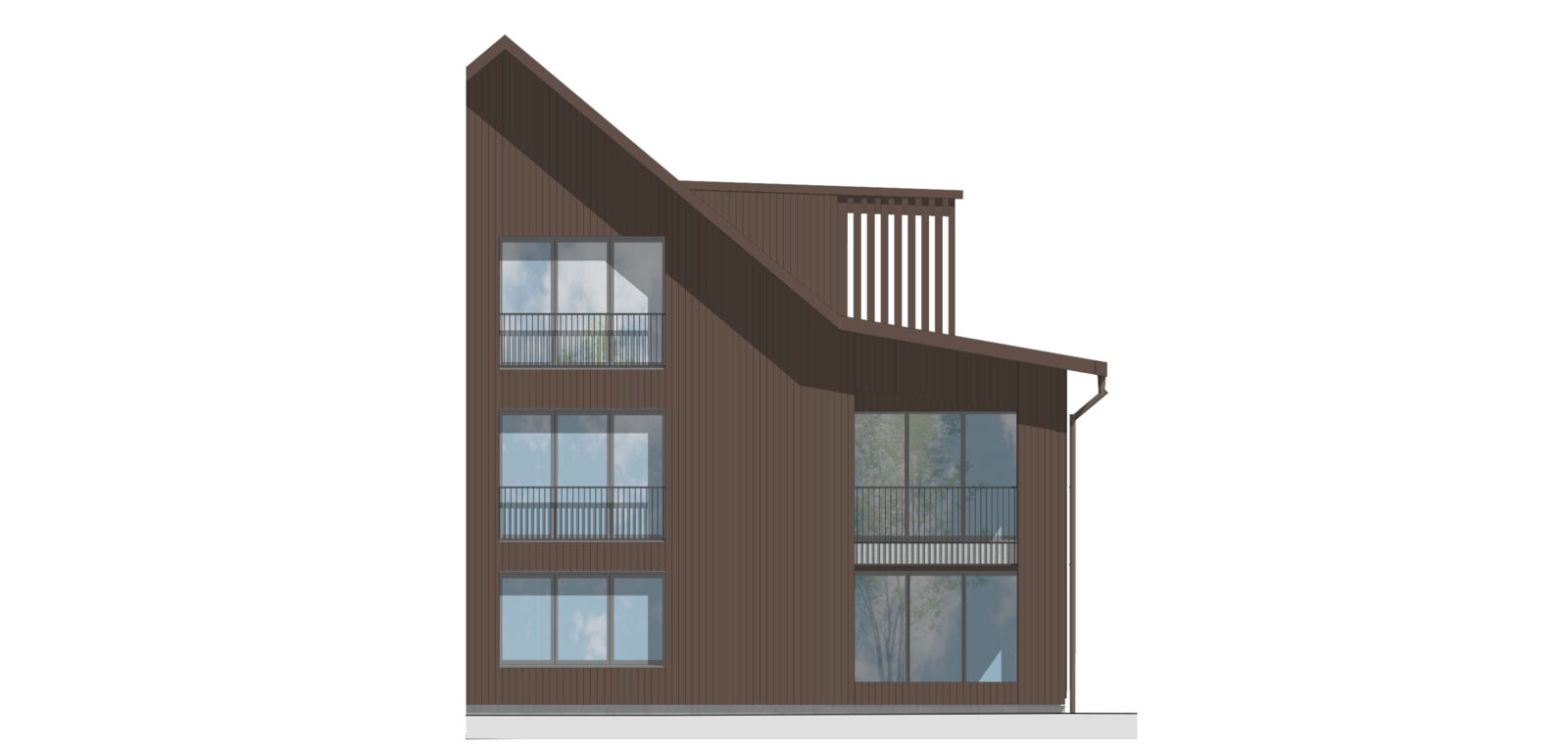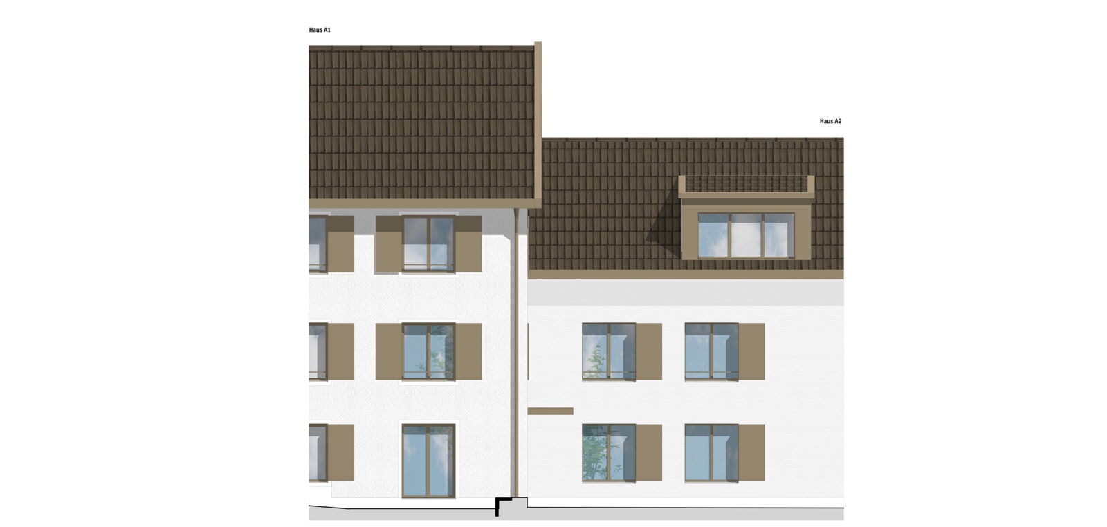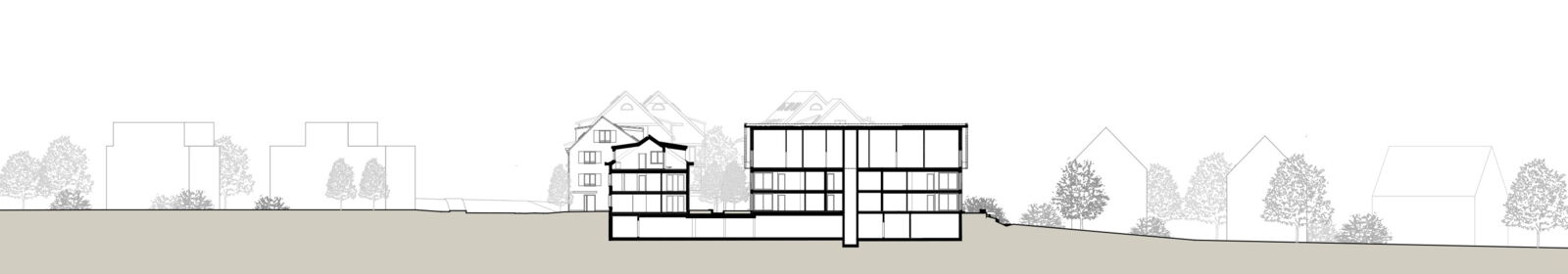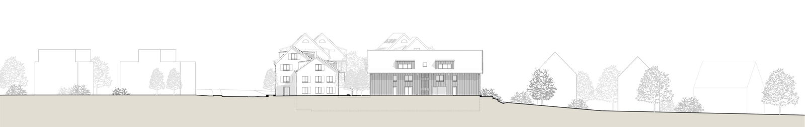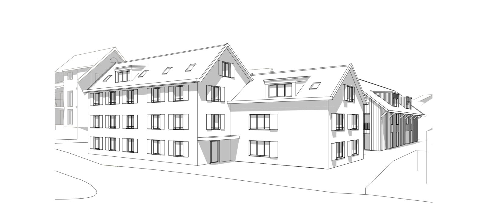 Beim Wohn- und Geschäftshaus Seetalstrasse 42/44 handelt es sich um ein Volumenschutzobjekt; es ist für das Ortsbild von besonderem Wert. Das Haus A1 übernimmt die Stellung des bestehenden Volumenschutzobjektes. Das Haus A2 ist gegenüber dem Haus A1 zurückgestaffelt und übernimmt die Firstrichtung des Hauses A1. Das hinten liegende Haus B steht rechtwinklig zu den Häusern A1 und A2. Die Stellung der drei Gebäude ordnet sich gut in das Ortsbild ein. Die drei Häuser sind als schlichte rechteckige Körper gestaltet.