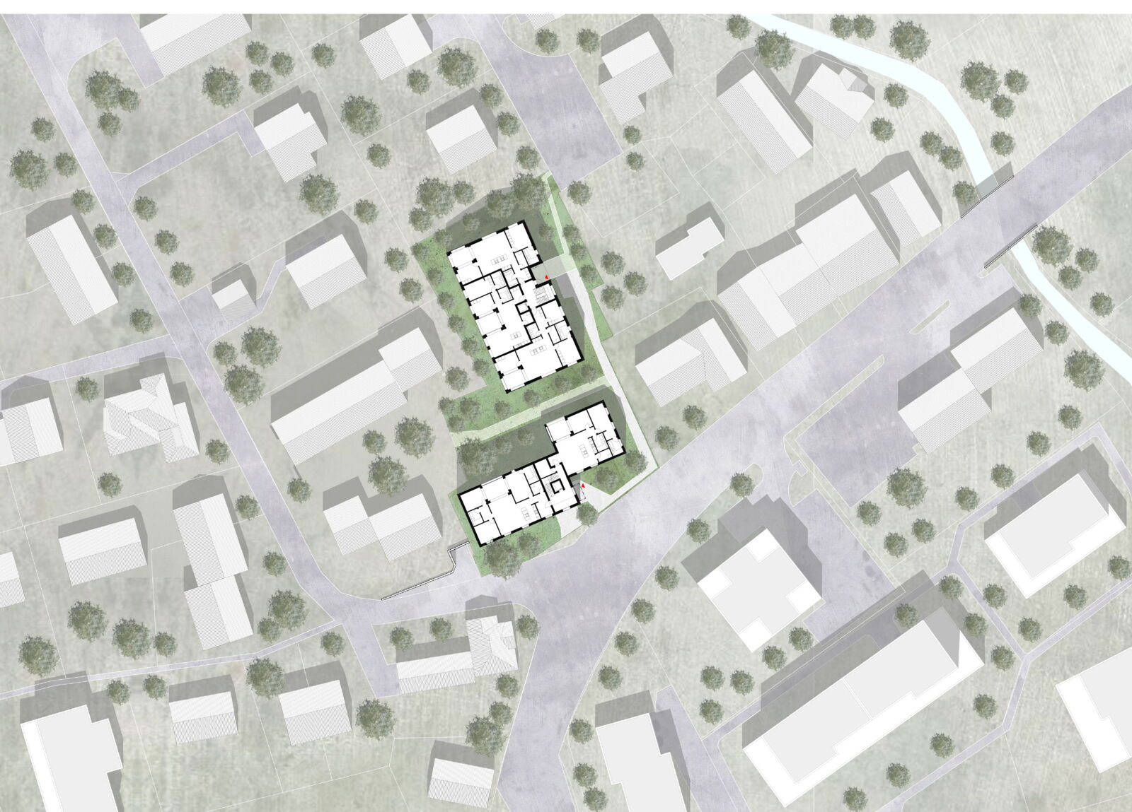 In der Dorfzone, auf der nördlichen Seite der Seetalstrasse, planen wir eine Überbauung mit drei Mehrfamilienhäusern auf den Parzellen 1908, 1909 und 2860 mit einer Gesamtfläche von 1‘931 m².
