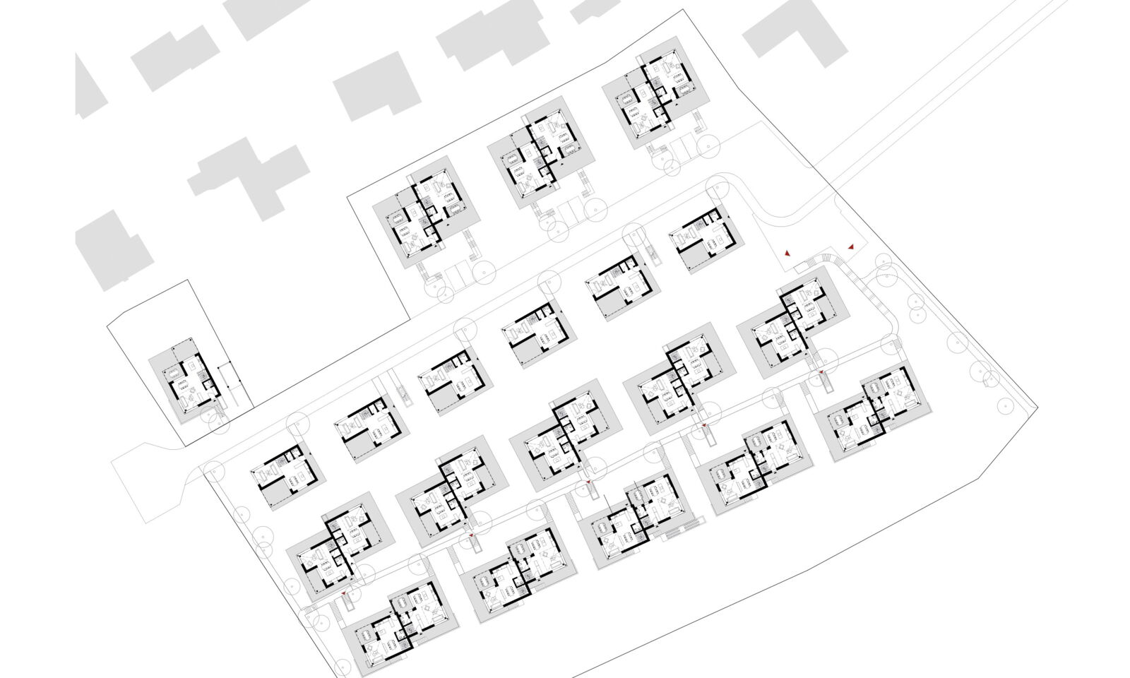 Die Häuser werden in Massivbauweise erstellt, mit Fassaden in Klinker. Es ist vorgesehen, die Fassaden so zu gestalten, dass die Siedlung einen einheitlichen Ausdruck erhält.