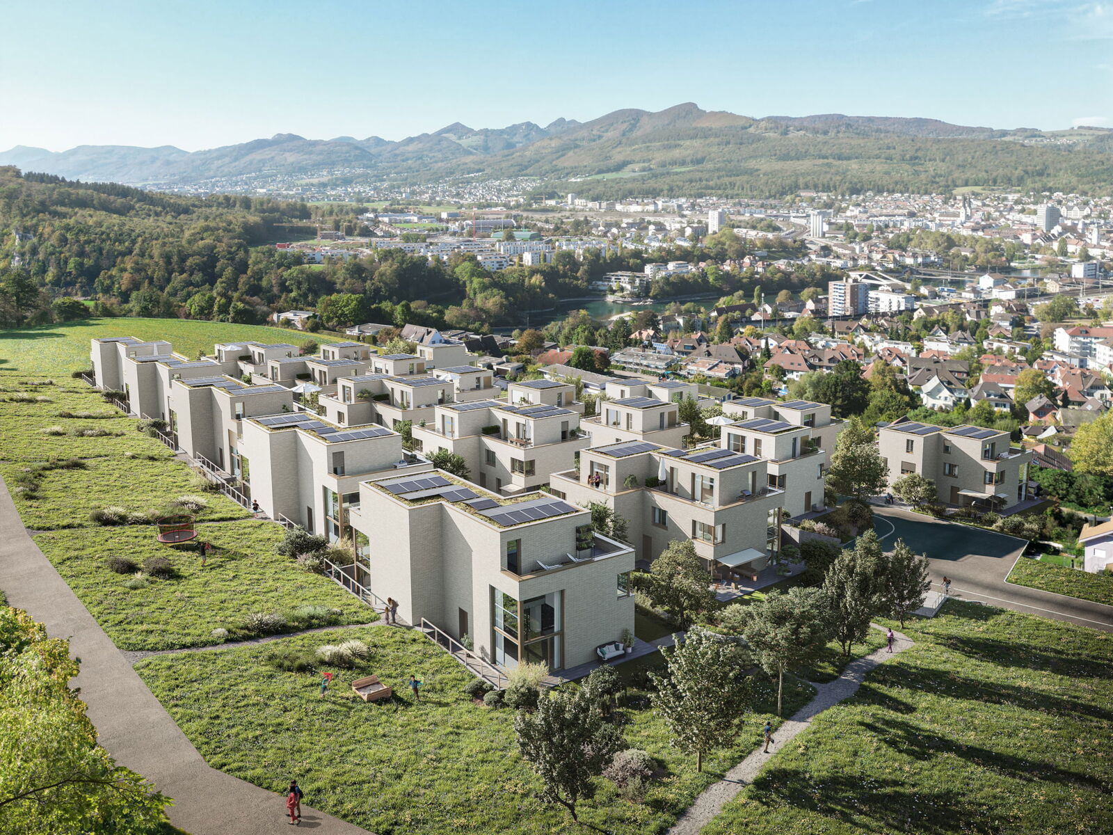 Auf dem Fustligfeld in Olten planen wir eine neue Siedlung mit 13 Doppelfamilienhäusern und 7 Einfamilienhäusern im Eigentum. Das 15‘486 m2 grosse Grundstück auf der Parzellen 722 und 6837 ist geprägt durch eine Hanglage. Hangseitig, im Süden wird das Grundstück begrenzt durch den Fustligweg und den anschliessenden Säliwald. Talseitig, gegen Norden, öffnet sich der Blick über die Stadt Olten. Die Häuser sind gegliedert in vier Reihen, die parallel zum Hang laufen.