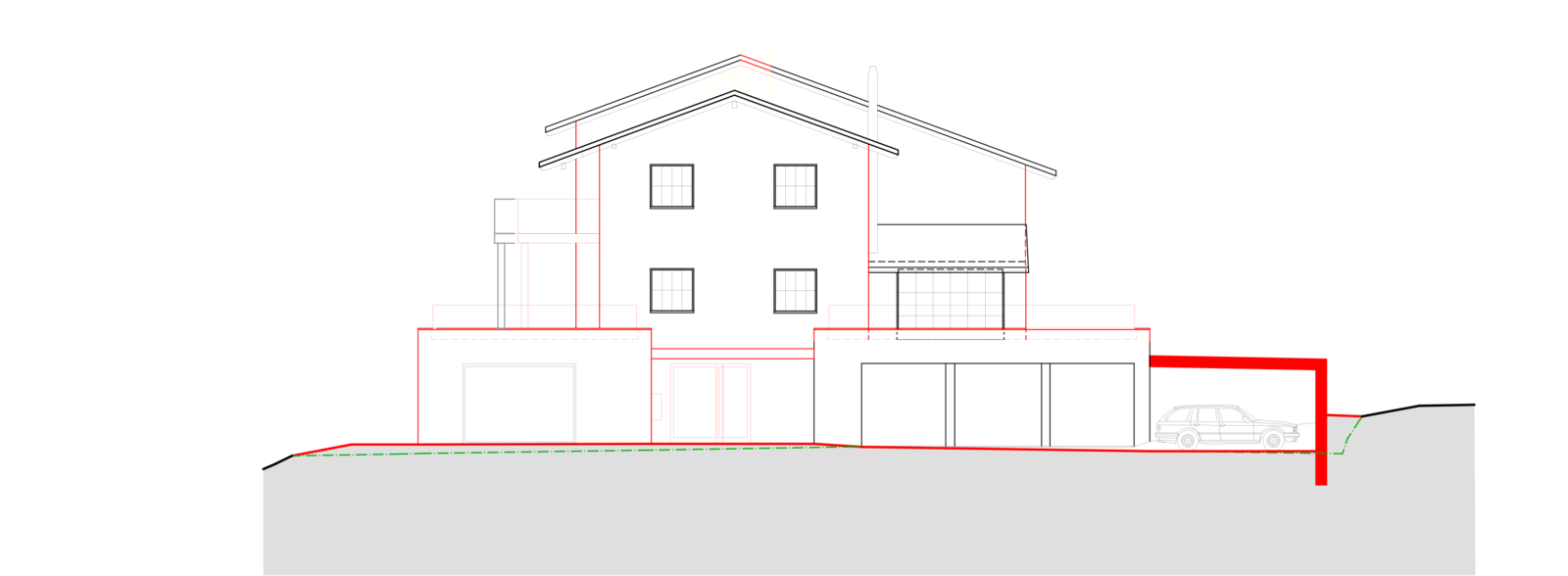 Die ehemalige Knabenschule liegt am östlichen Ortsrand oberhalb von Oberbipp. Der bestehende Bau verfügt über eine Länge von ca. 40m und eine Höhe von ca. 12m und wurde bereits mehrfach umgenutzt. Anhand einer Machbarkeitsstudie haben wir verschiedene Möglichkeiten wie Erhalt und Abriss geprüft. Da ein Ersatz-Neubau dieser Grösse auf dem Grundstück aufgrund behördlicher Vorgaben nicht möglich wäre, haben wir die Umgestaltung des bestehenden Gebäudes vorgeschlagen.