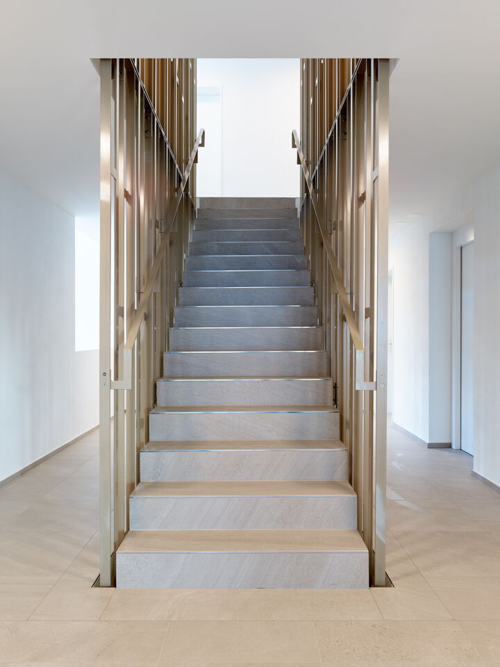 Die Volumina zeichnen sich durch eine mehrfache Gliederung aus. Die dreiflügeligen Körper werden über die eckseitig angeordneten Loggien und deren Überhöhung in Form des Attikageschosses skulptural gegliedert. Vorspringende Putzbänder strukturieren die Gebäudekörper horizontal mäandrierend mit den Fensterbändern. Die Abschlüsse der Gebäudeecken werden als teilverglaste unbeheizte Loggienräume ausgebildet, welche auch die gemäss Schallschutzgutachten notwendigen lärmabgewandten Lüftungsmöglichkeiten gewährleisten.