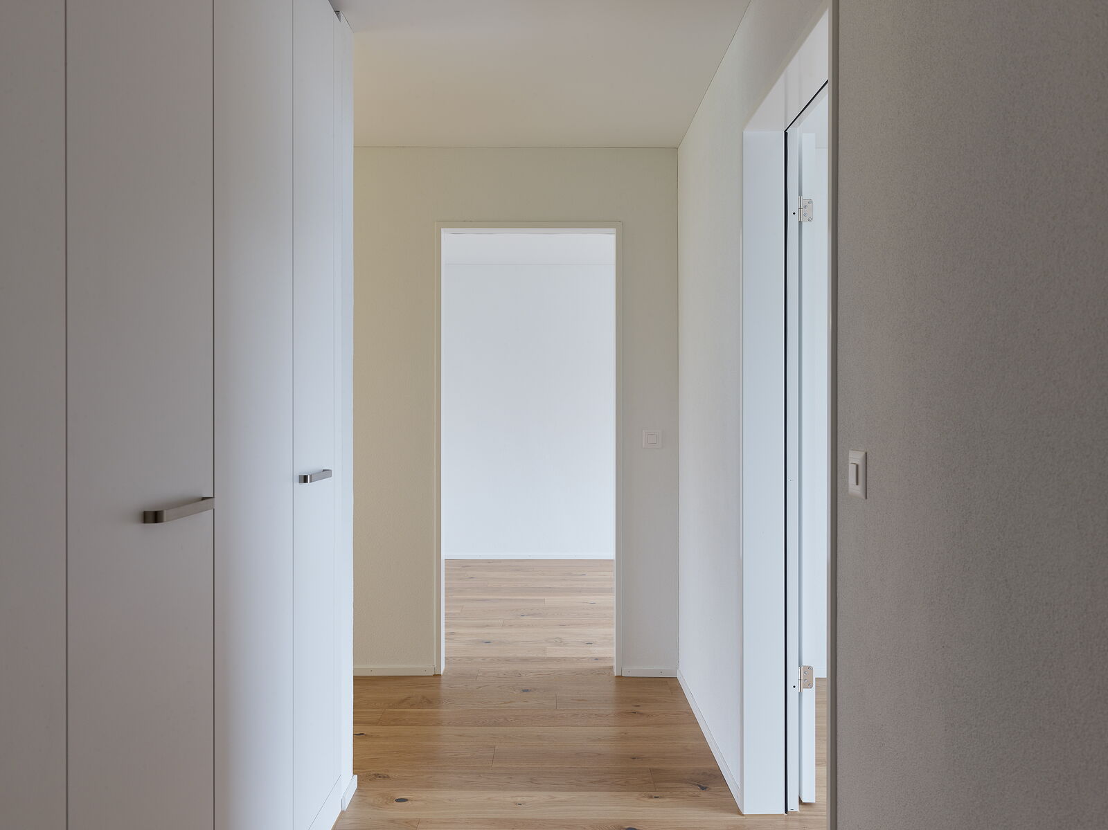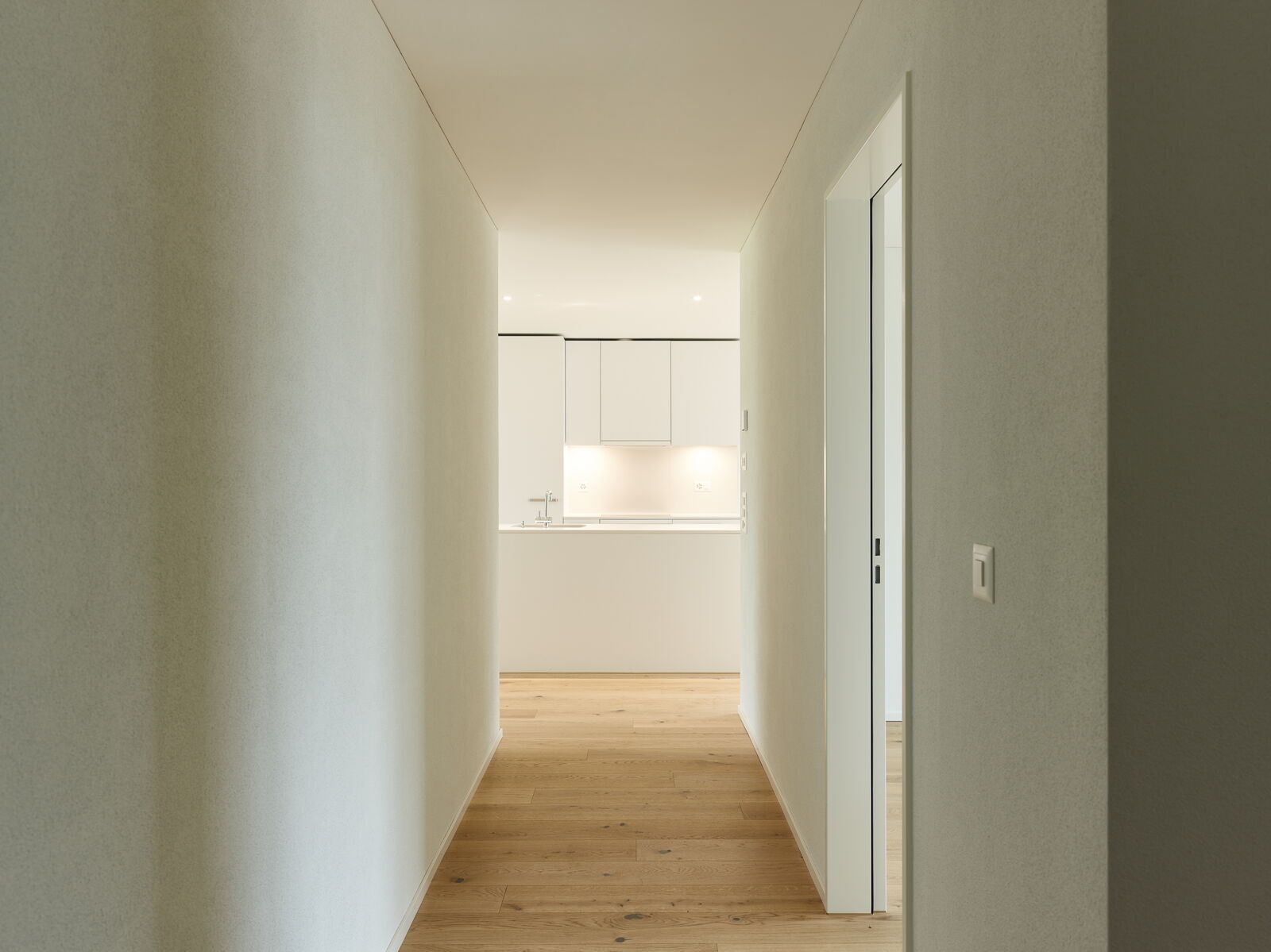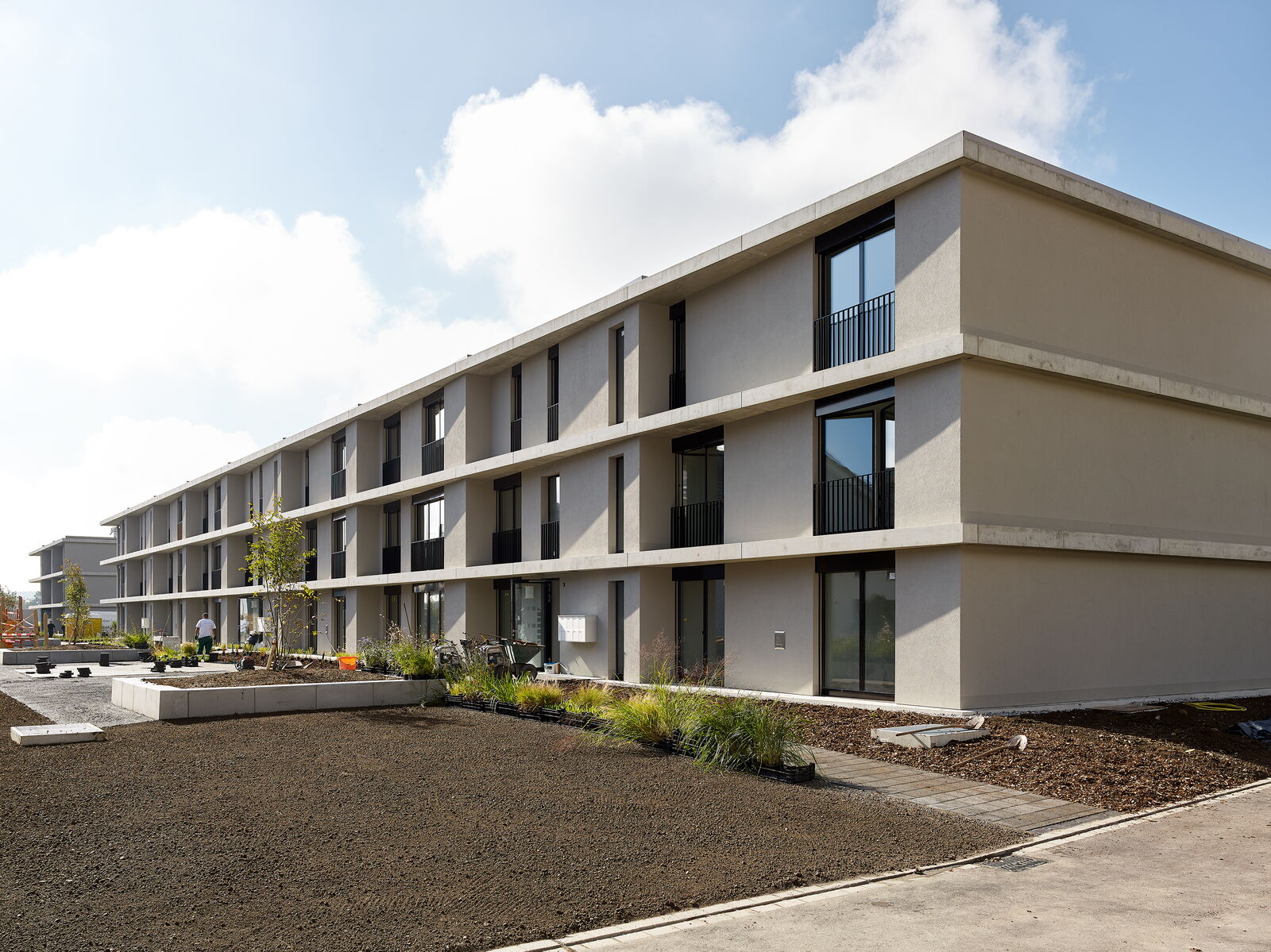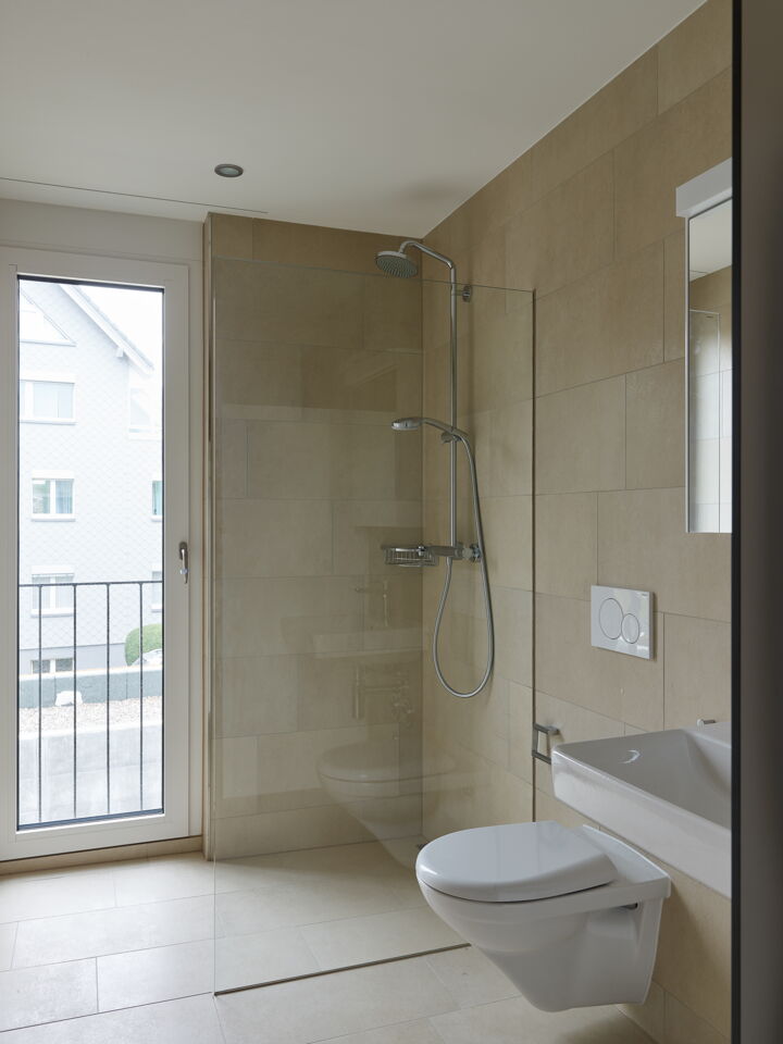 Zwei dreispännig organisierte Mehrfamilienhäuser bieten insgesamt Platz für 34 Mietwohnungen. Die 2.5 Zi – bis 4.5 Zi Wohnungen wenden sich von der Strasse ab und orientieren sich zur nahegelegenen Jurakette.