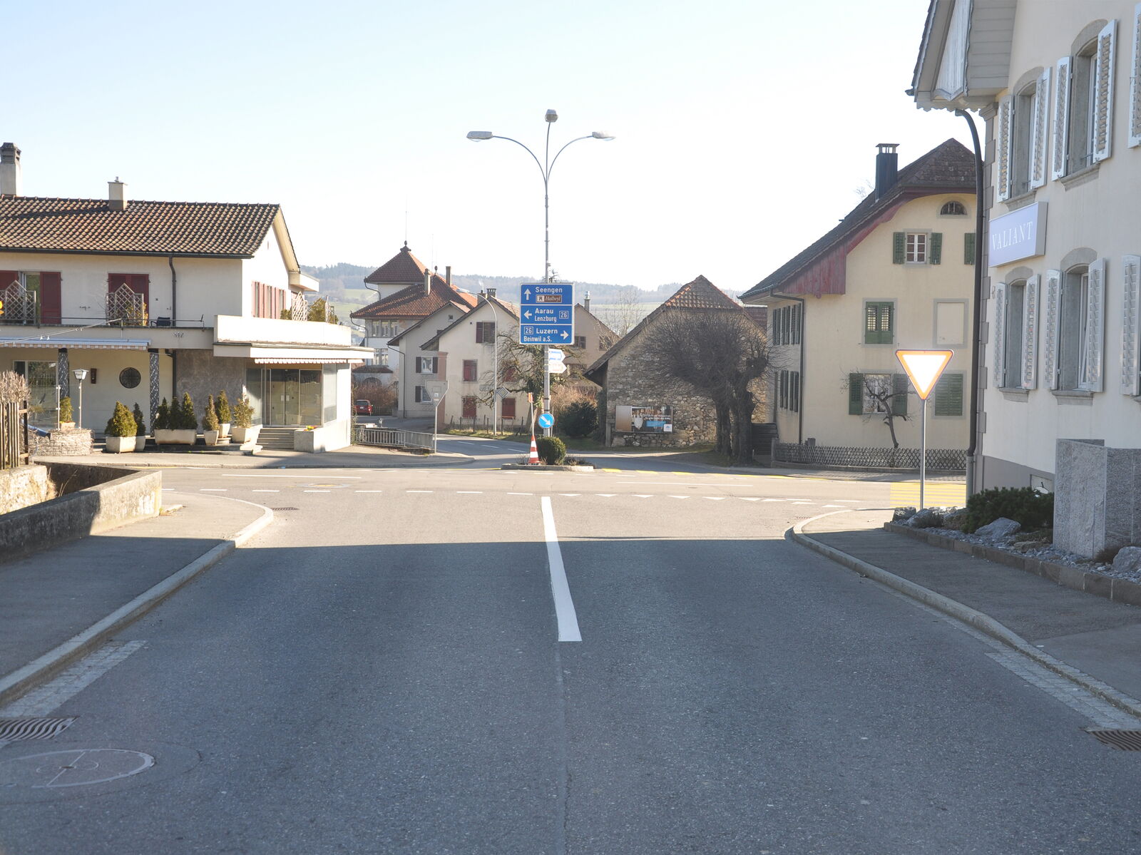 Unser Neubau ersetzt ein volumengeschütztes Objekt, das ortsbildprägend an der Kreuzung Seenger- und Seetalstrasse den Strassenraum fasst. So ordnet sich der Neubau bezüglich Proportionen und Form in die gewachsene Bebauung ein.